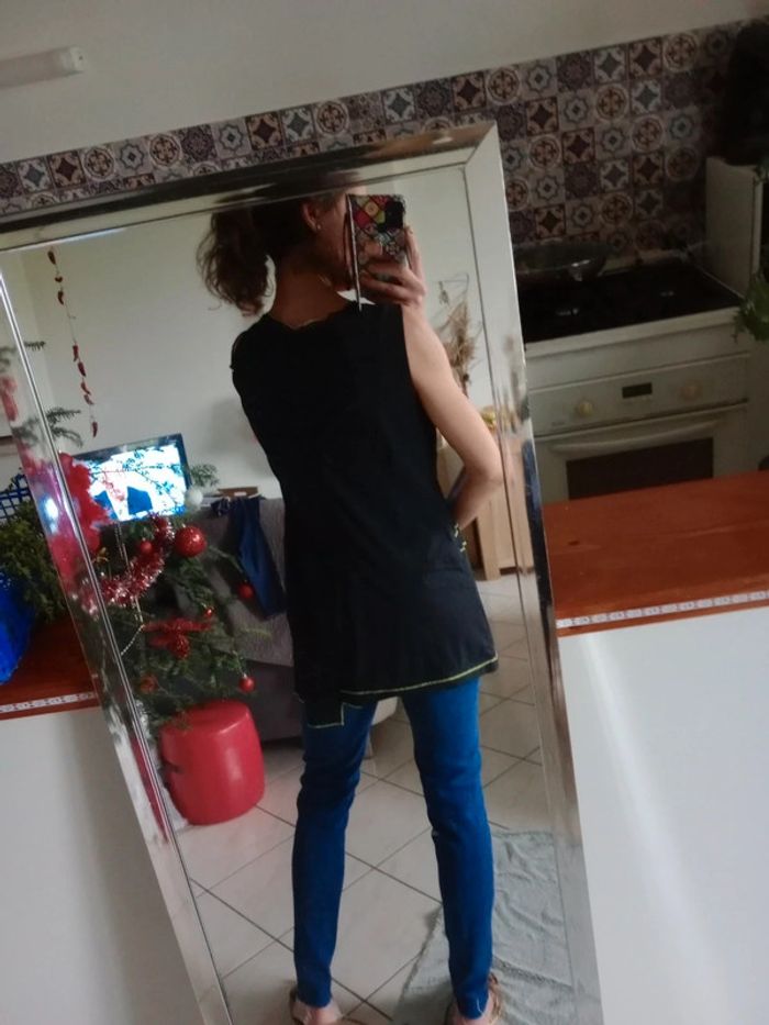 Tunique femme taille 5 noire et verte jaune c57 - photo numéro 7