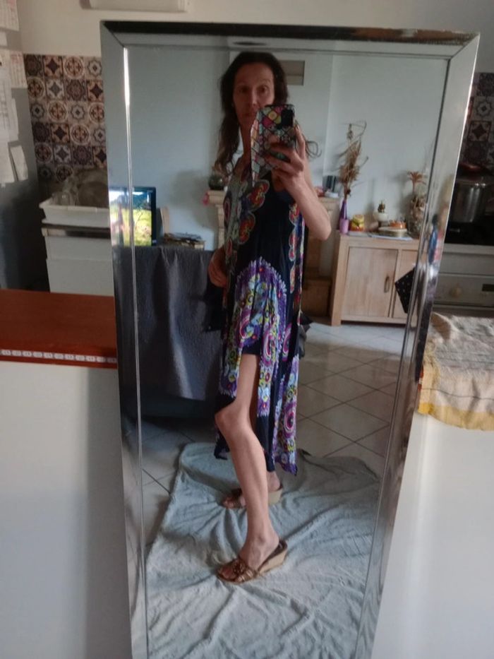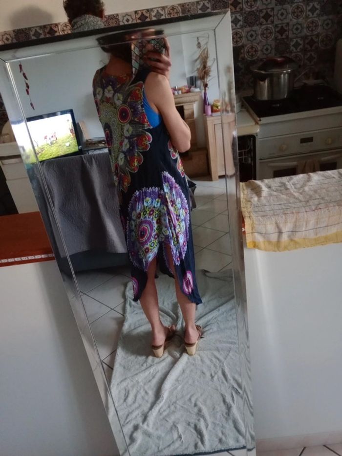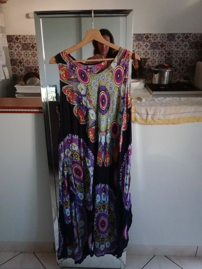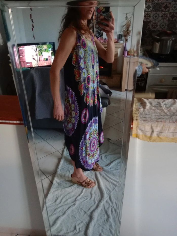 Très jolie robe confortable, fluide Asymétrique dans le bas🥰 Longueur 127 cm Épaule à épaule 36 cm Aisselle à aisselle 65 cm Plus d'étiquette marque ni matière ni taille #carineleray_femme_42