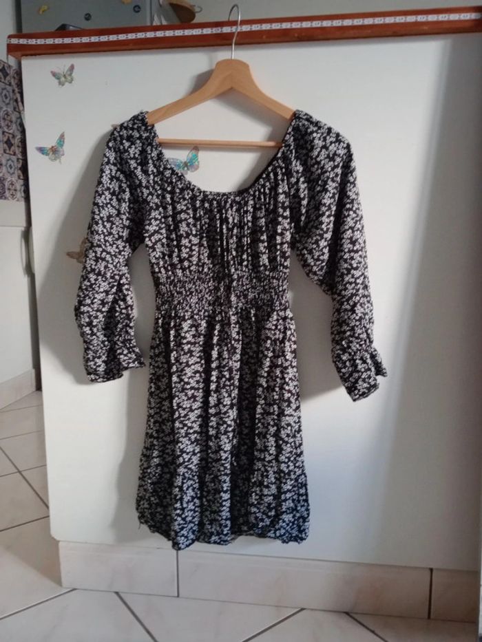 Robe XS petites fleurs noires et blanches c1 - photo numéro 1