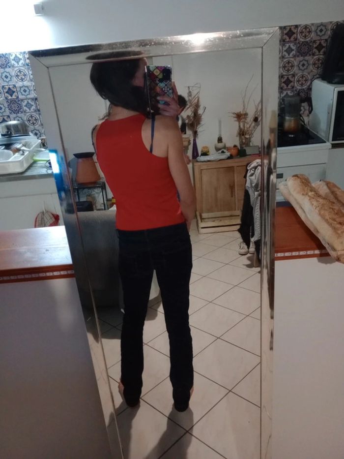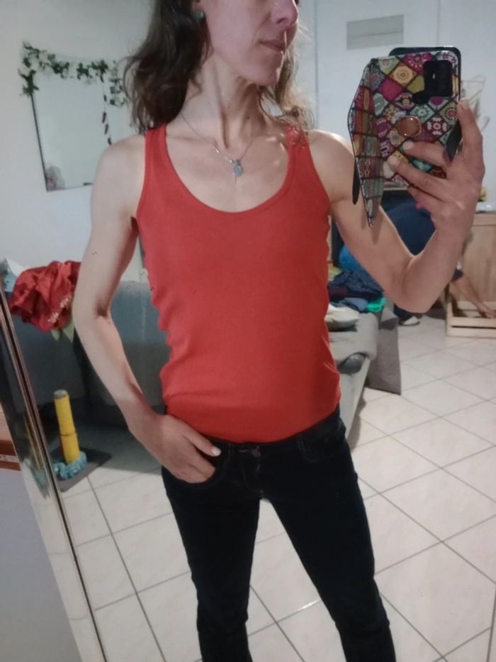 Légèrement côtelé tout fin 100 % coton Col rond Aisselle à aisselle 43 cm Épaule à épaule 26 cm
