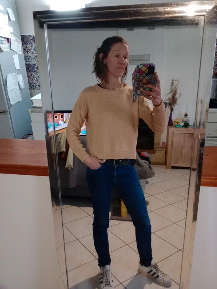 Superbe pull, mailles impeccables , col rond Fendue de chaque côté Longueur 54 cm Aisselle à aisselle 62 cm #carineleray_femme_36