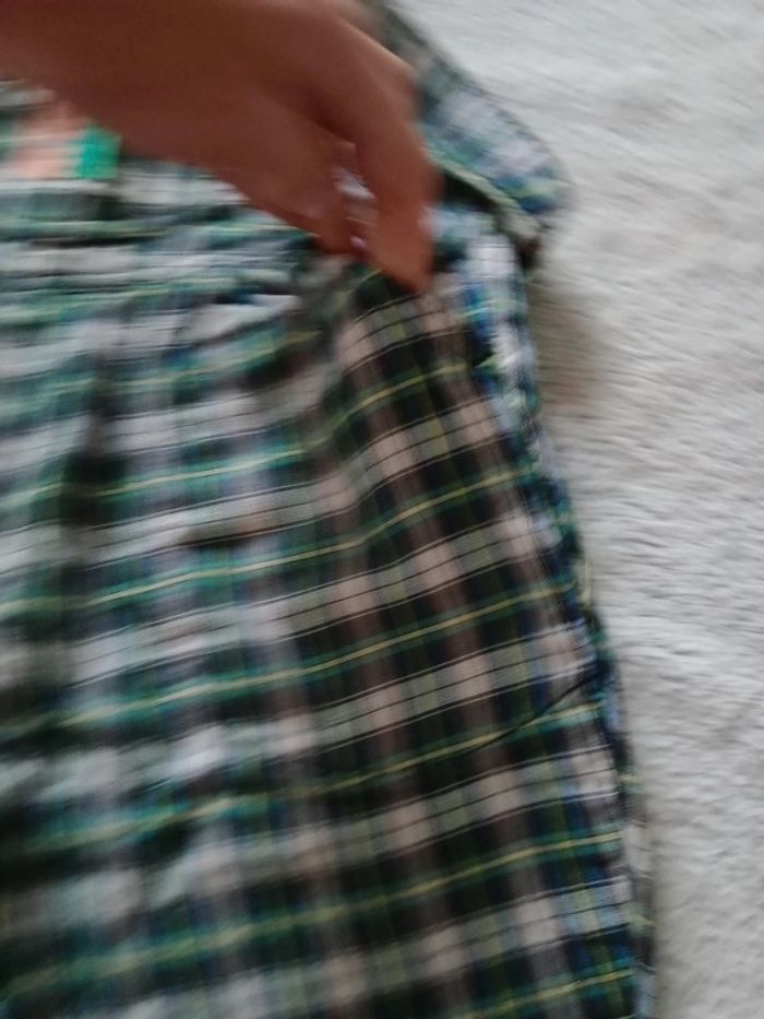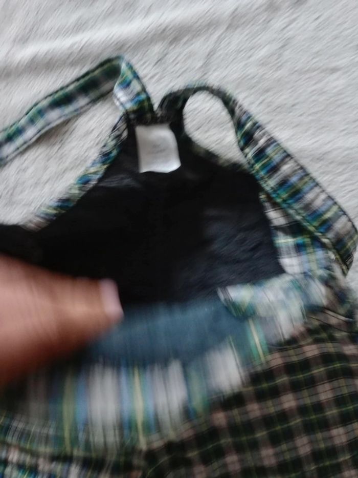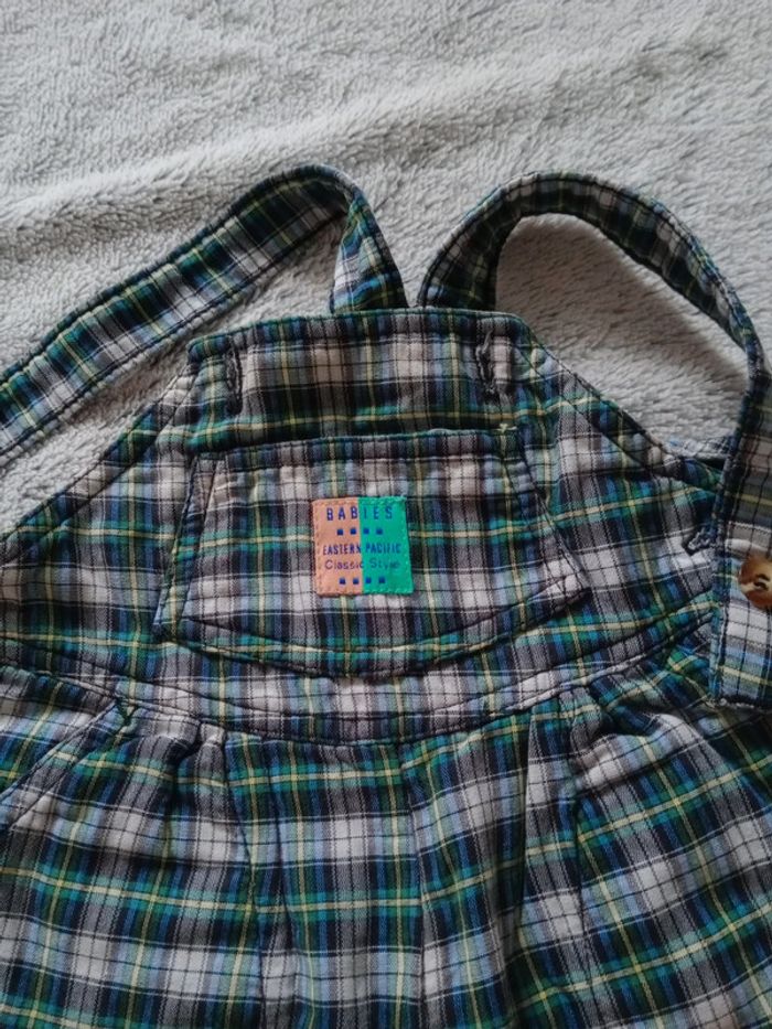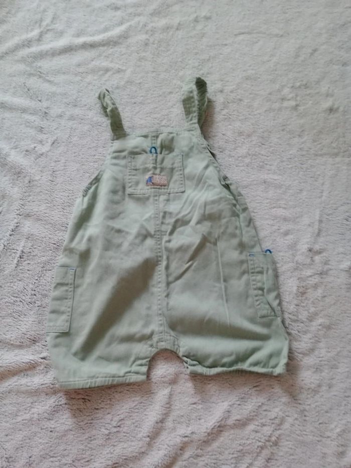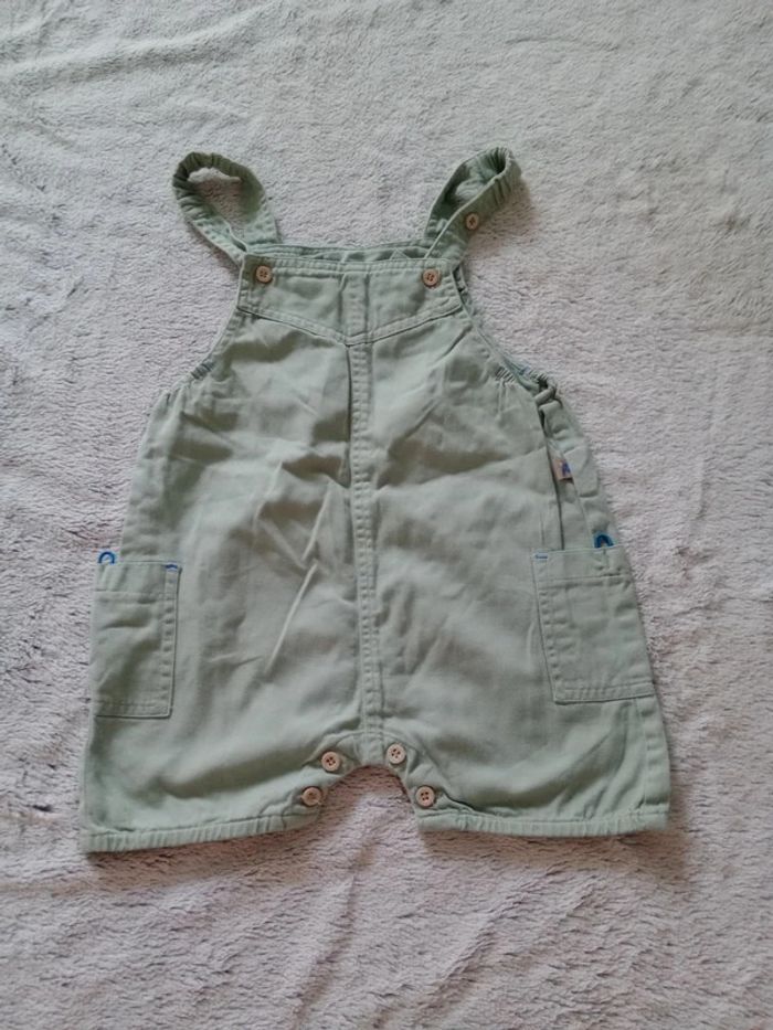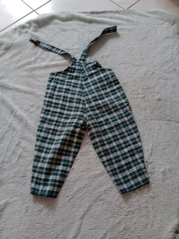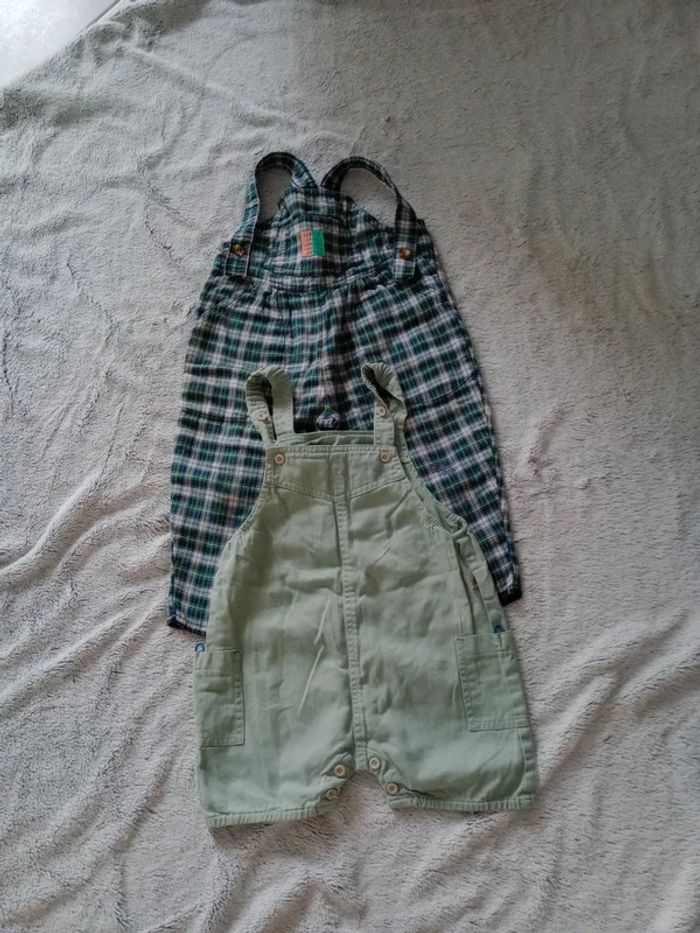 Lot composé d'une salopette longue type écossais et d'une salopette courte vert de gris , boutons entre les jambes #carineleray_18m