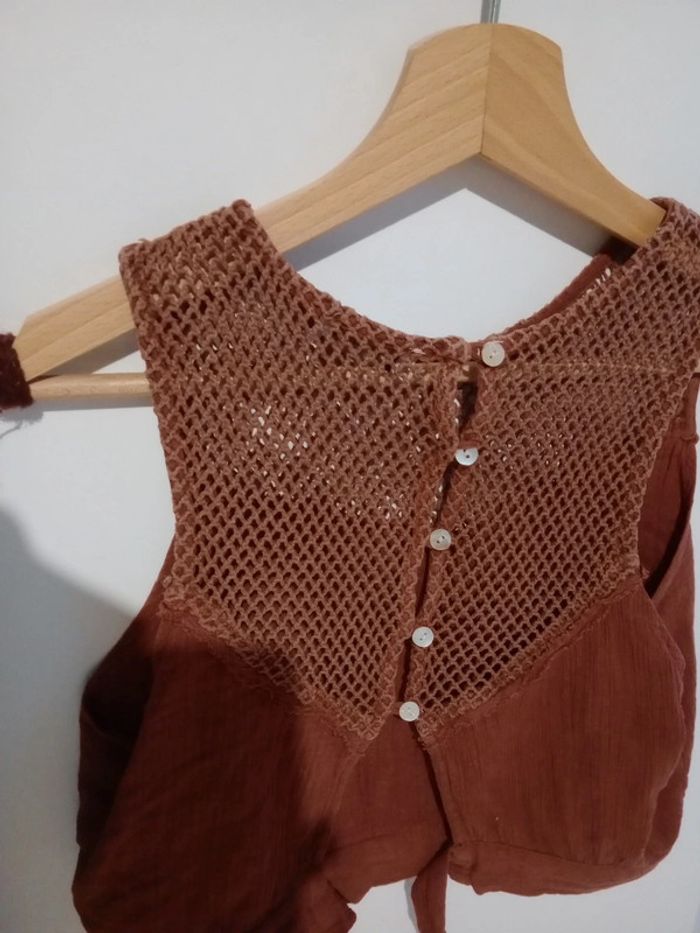 Ajouré dans la partie haute Présence d'un lien à l'arrière et de boutons tout le long de la colonne vertébrale #carineleray_femme_36