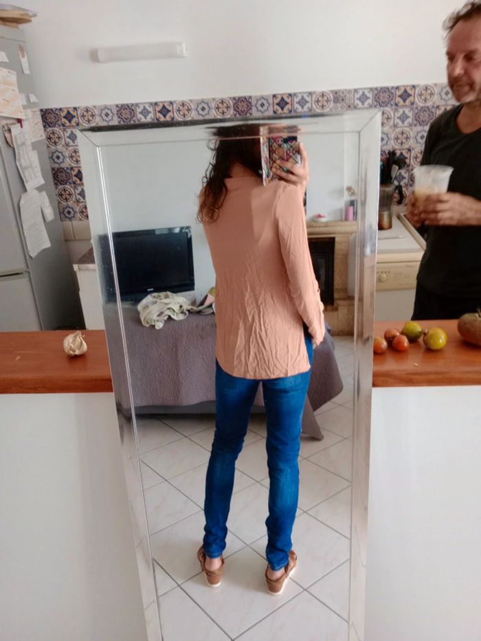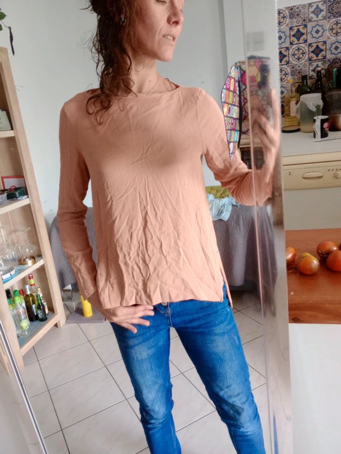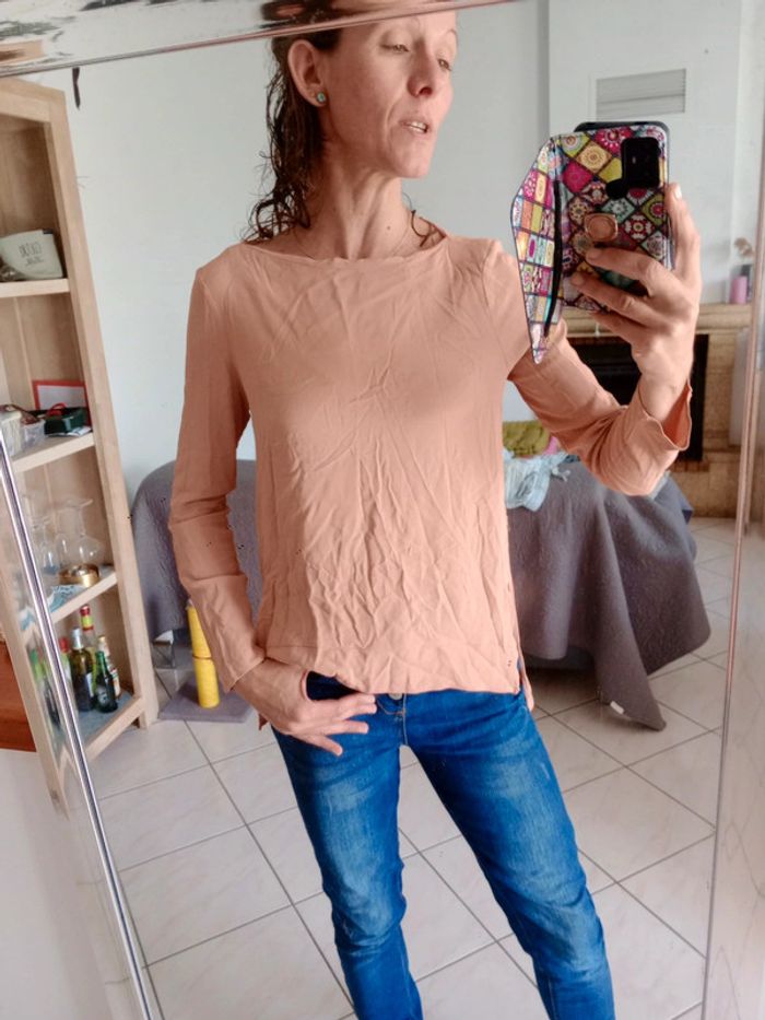 Plus d'étiquette matière ni taille Blouse asymétrique plus longue derrière que devant La couleur est superbe 😍 Aisselle à aisselle 48 cm #carineleray_femme_36