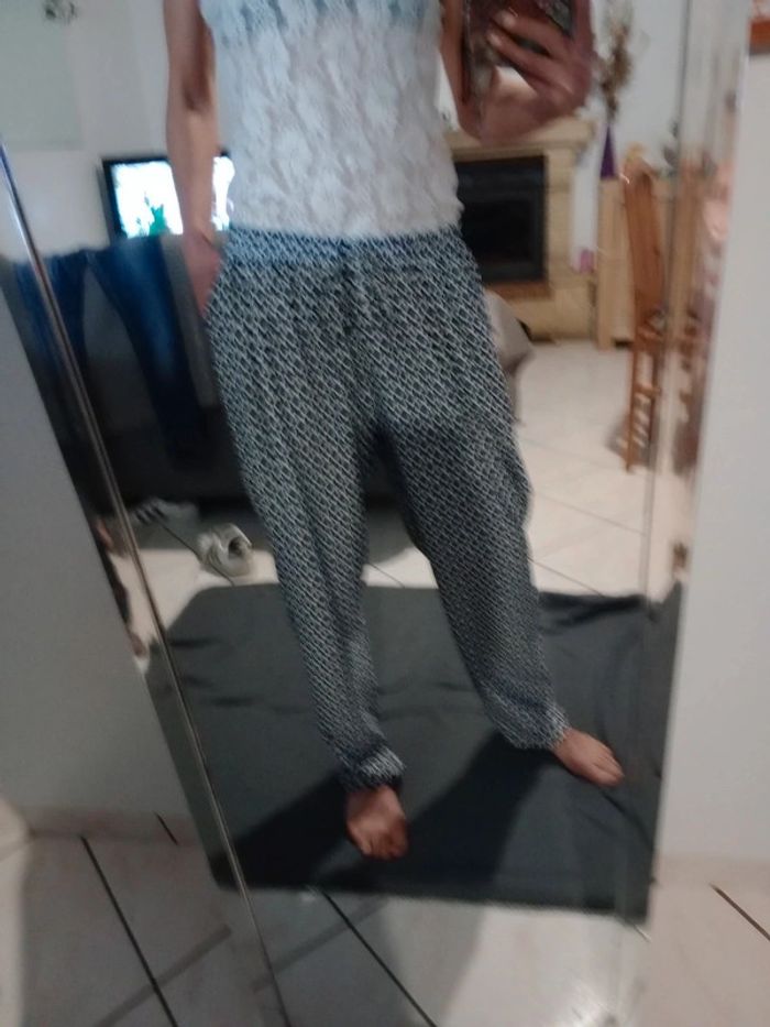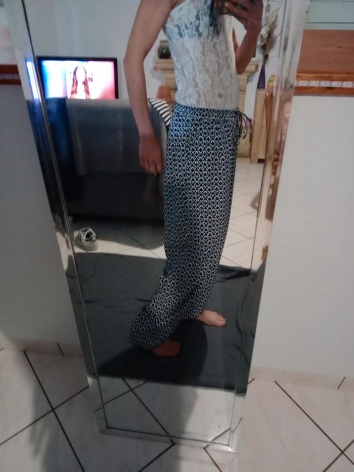 Pantalon fluide femme 44 blanc et bleu c7 - photo numéro 2