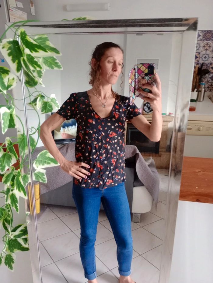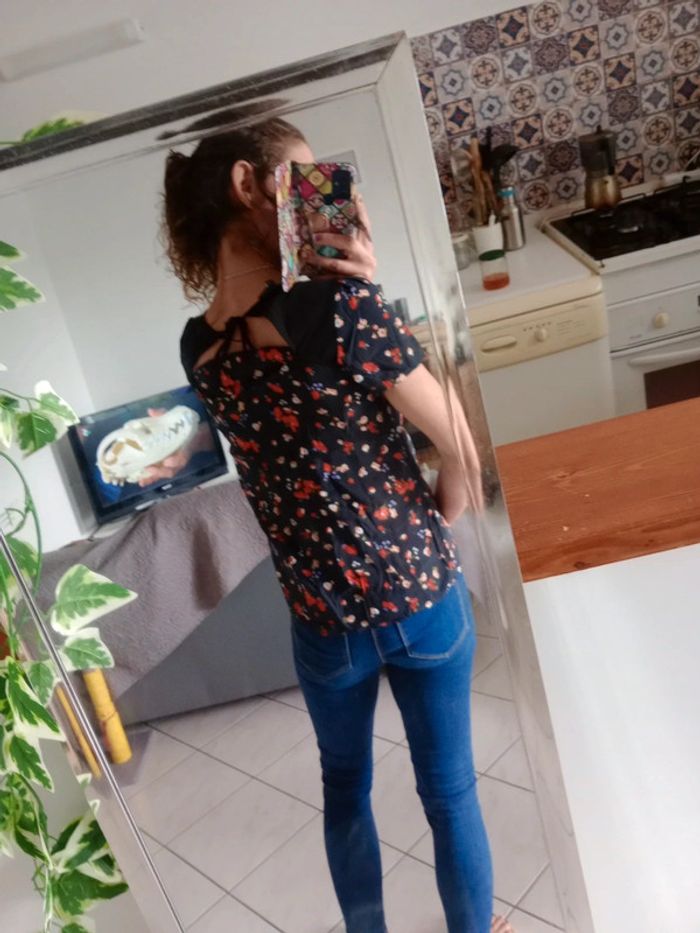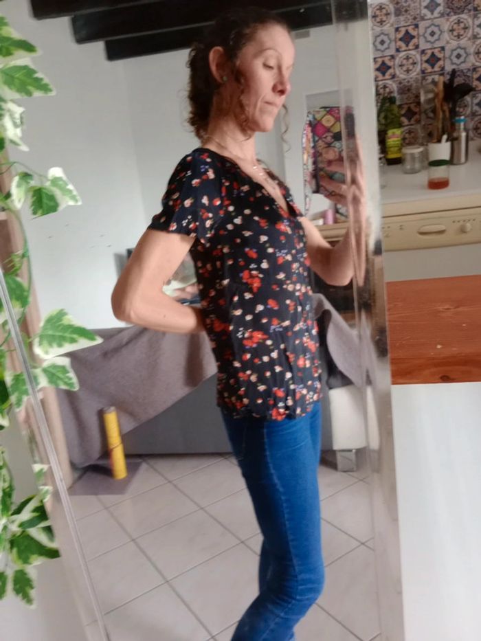 Très belle pièce 🥰 Derrière la nuque un lien et "une bulle" qui laisse découvrir légèrement le dos Au niveau des épaules empiècement transparent Une couture a été faite au niveau de l'aisselle gauche de façon très propre voir dernière photo #carineleray_femme_36 Indiquer taille 34 pour moi c'est un 36 autrement je ne rentrerai pas dedans surtout que j ai les épaules bien carrées🤣 Longueur aisselle à aisselle 47 cm