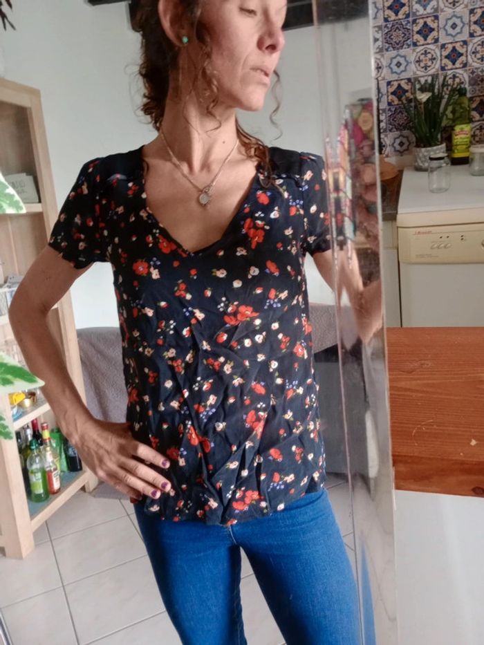 T-shirt femme s noir fleuri c21 - photo numéro 8