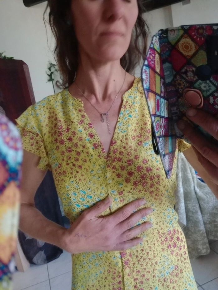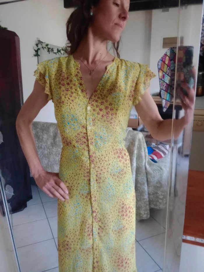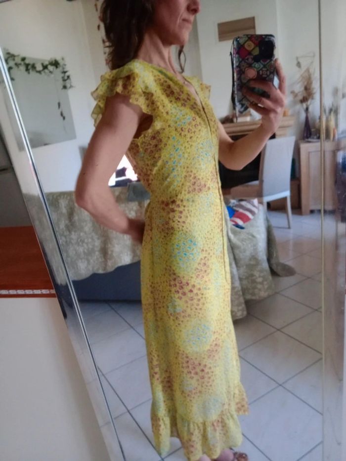 Magnifique pièce ❤️🥰 que je garde pour l'instant bien volontiers dans ma penderie 😜j adore son côté champêtre Robe tout en fluidité, intérieur doublée sur la partie jupe type voile Longue boutonnière qui descend jusqu'en bas De nombreux plissages notamment au niveau des épaules et dans le bas de cette robe Une ceinture pour marquer la taille #carineleray_femme_36 Indiquée taille s, pour moi c'est un grand s car je porte plutôt du M c'est ma taille de confort et là je suis largement confortable.... Donc convient également pour une taille 38 Une couture fragilisée sur 3 cm, il faut chercher 😅voir les trois dernières photos #carineleray_femme_36