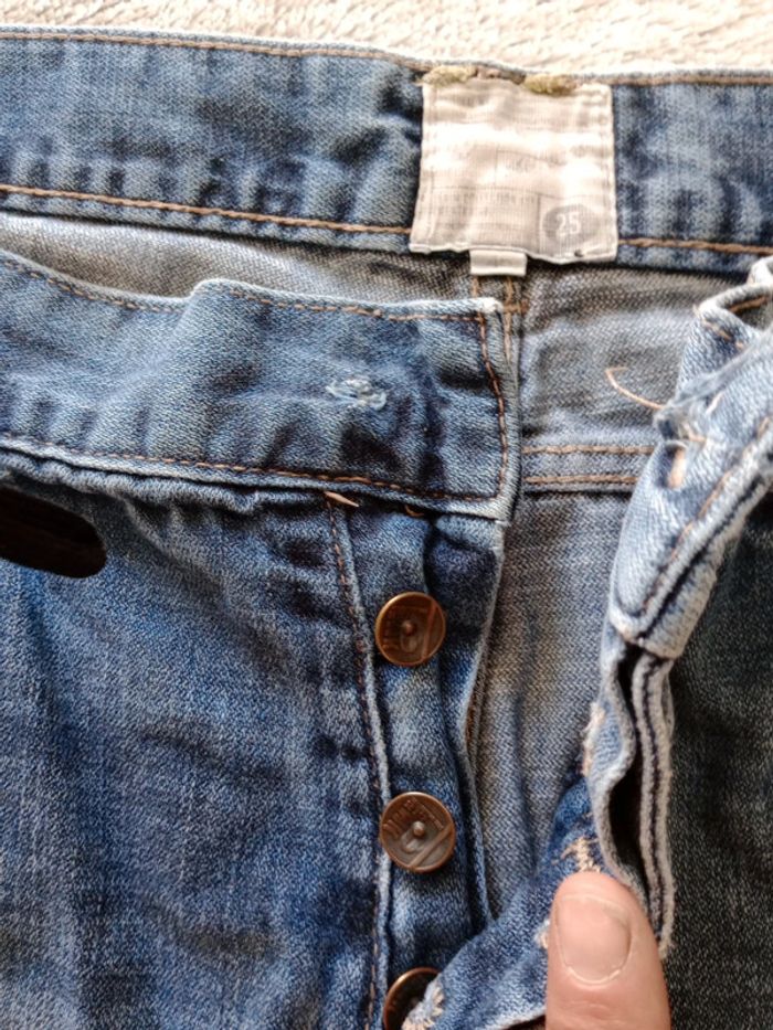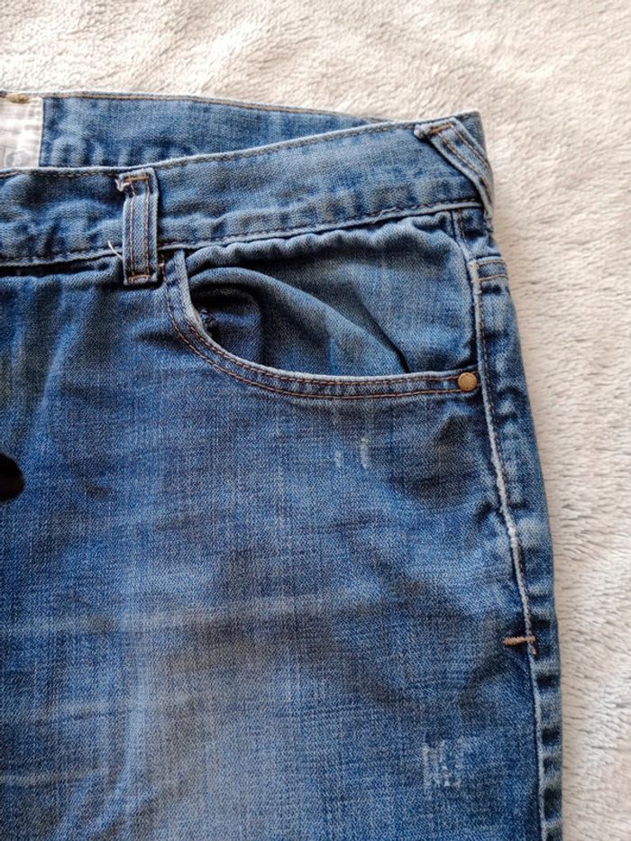 Jean homme délavé, Manque le bouton du haut à la braguette, Use à l'entrejambe, un trou La couleur est vraiment sympa ainsi que la forme regular #carineleray_homme