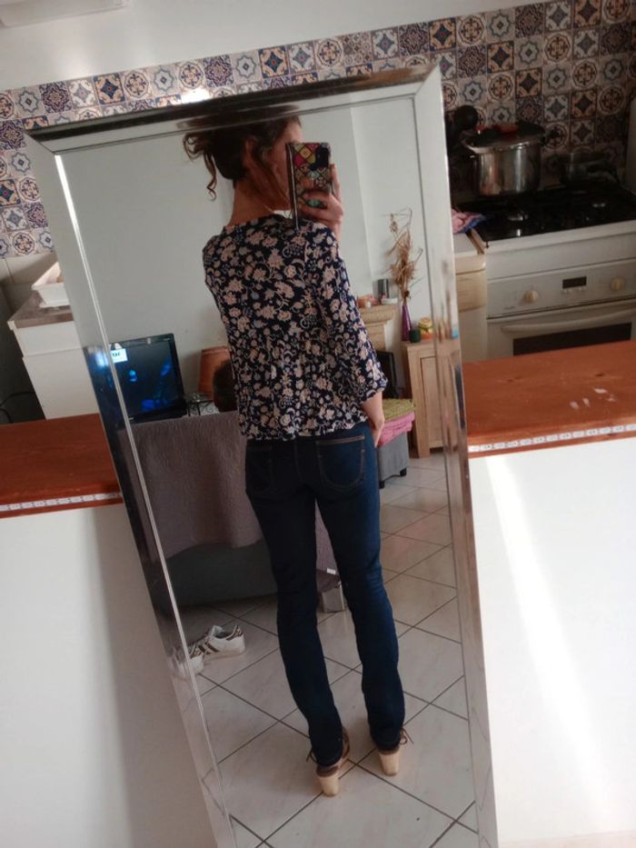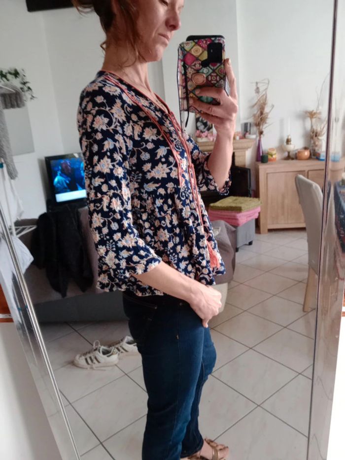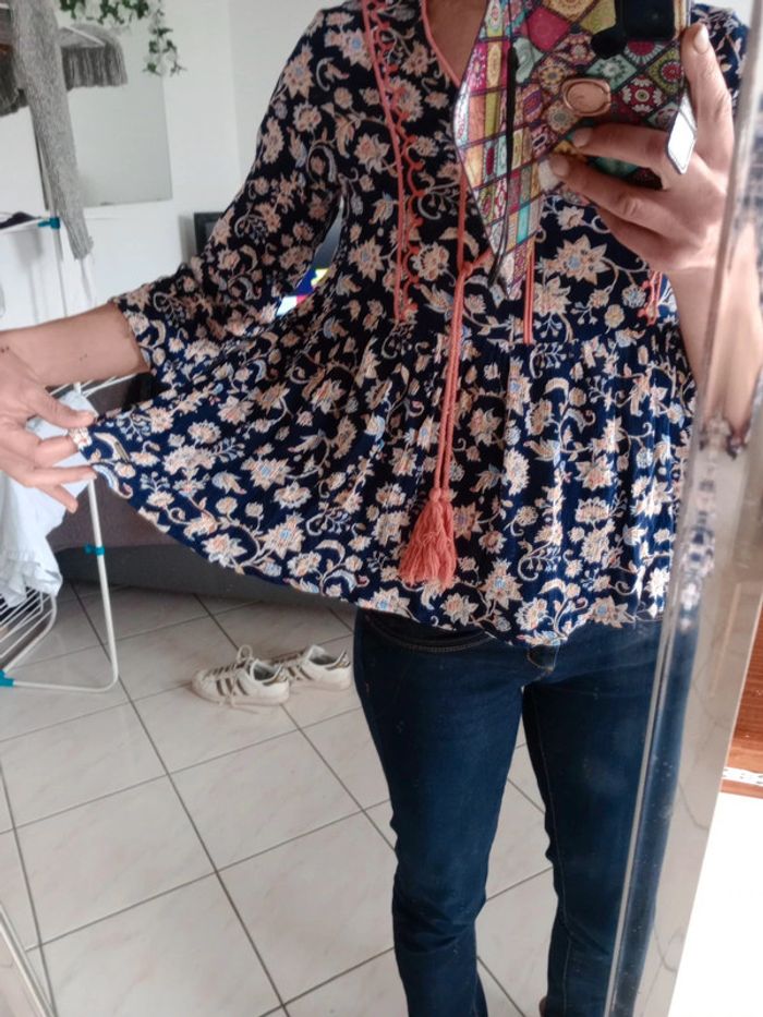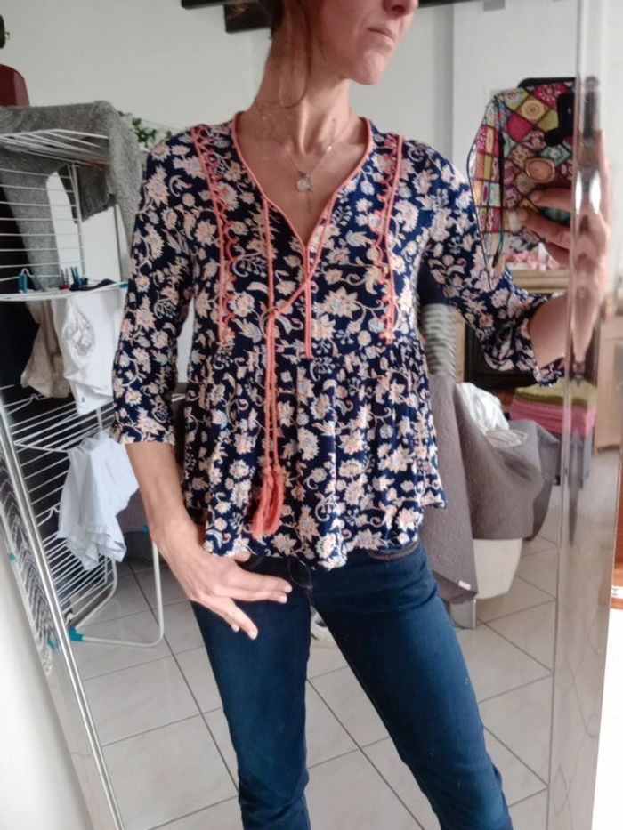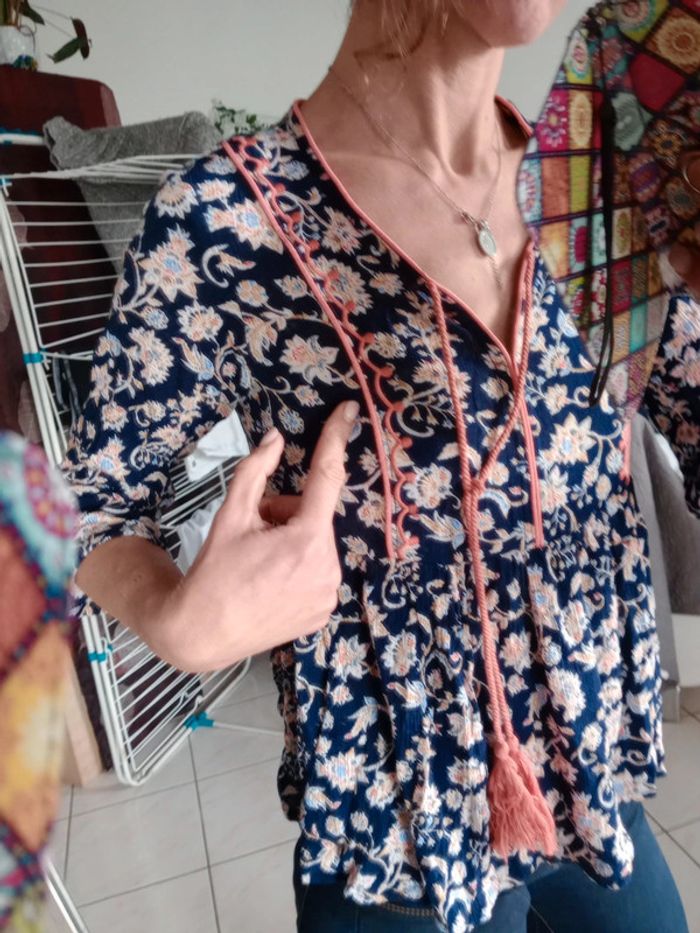 Superbe pièce impeccablement entretenue😍 Manches 1/2 Plus d'étiquette matière Un lien au niveau du col avec pompons😉 Légèrement gaufrée #carineleray_femme_36