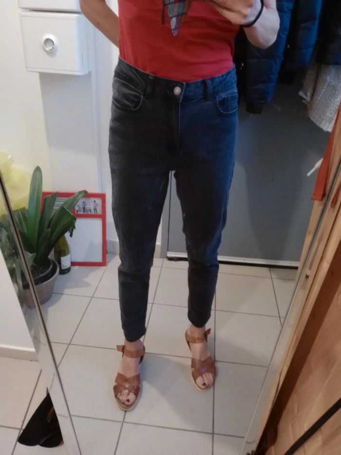 Jean  mom femme 36 noir délavé c51 - photo numéro 8