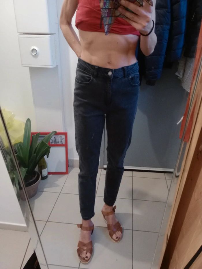 Jean  mom femme 36 noir délavé c51 - photo numéro 6