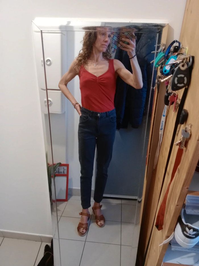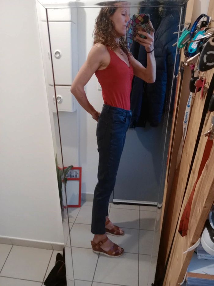 Longueur de la hanche en bas : 96 cm Indiqué taille 36, pour moi c est un grand 36 ou un petit 38 #carineleray_femme_36