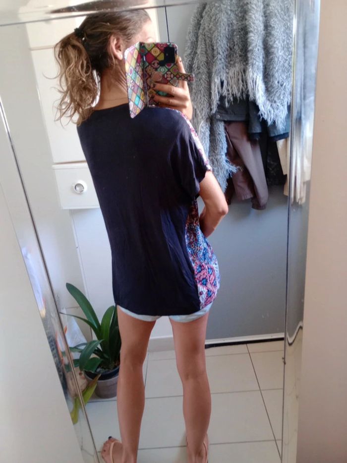 T-shirt femme taille xl fantaisie bleu marine c48 - photo numéro 3