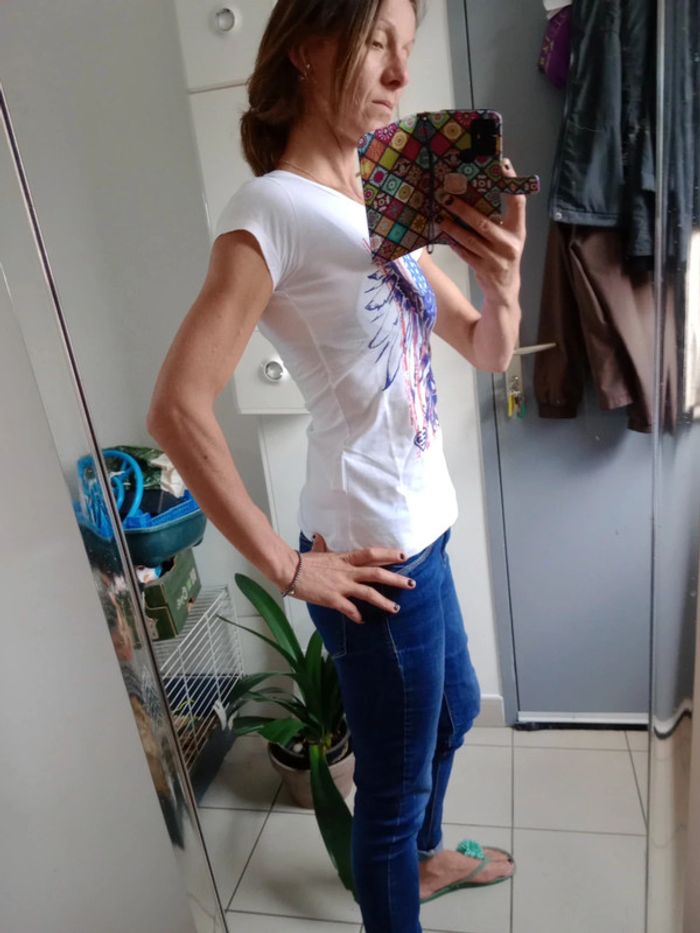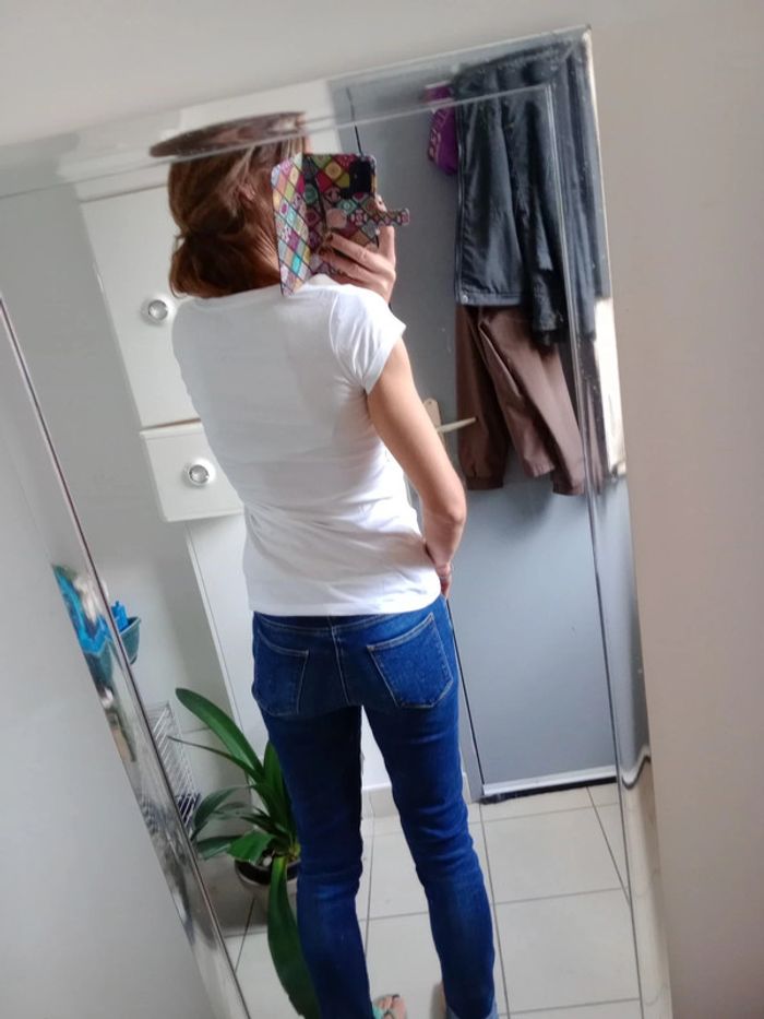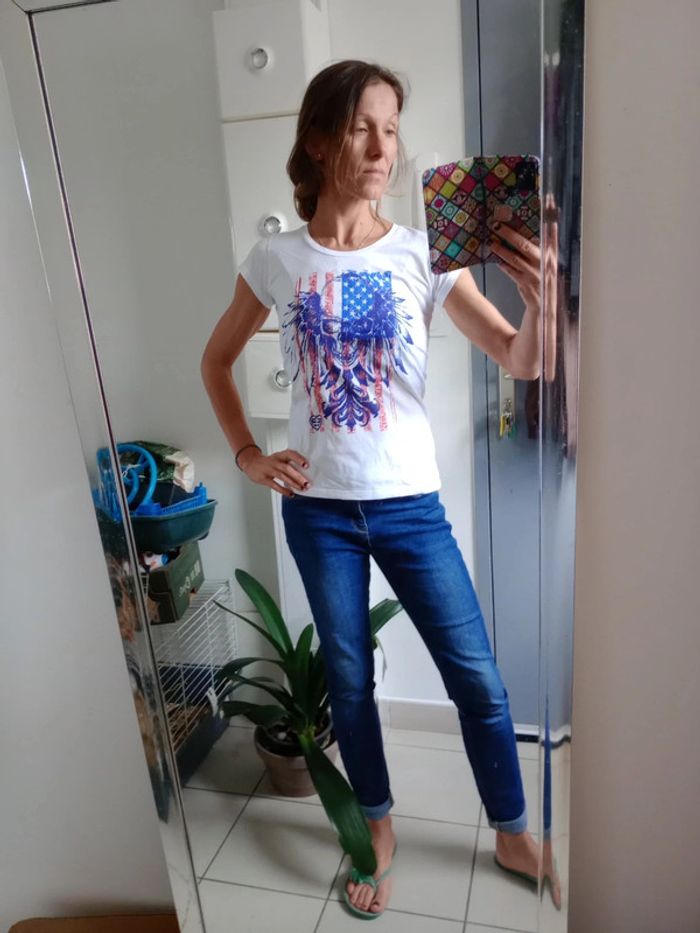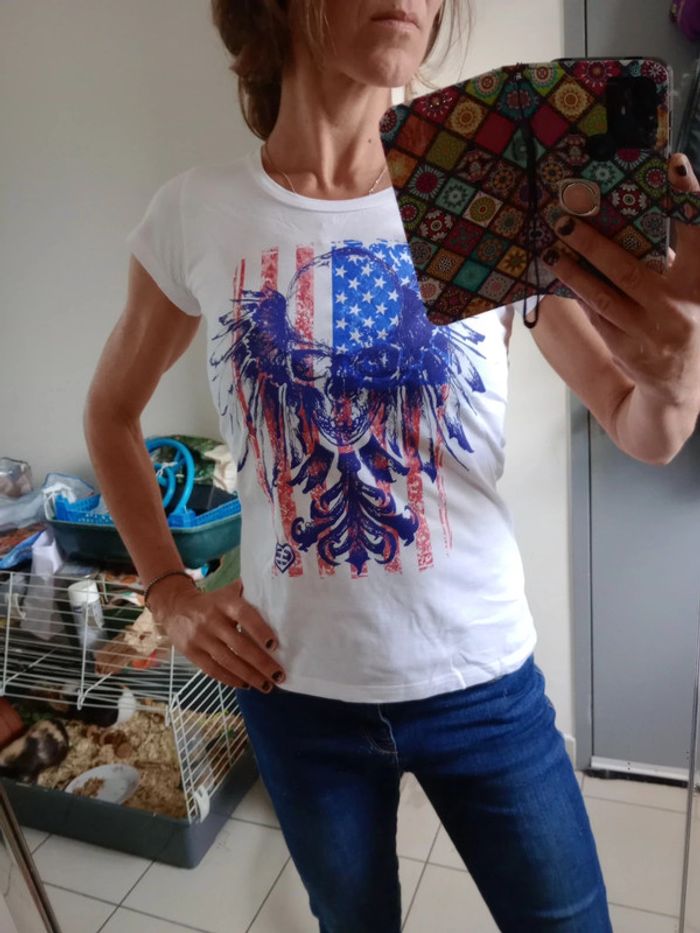 T-shirt à motif drapeau USA et tête de mort Impeccablement blanc sauf au niveau des aisselles voir photos 7 et 8 #carineleray_femme_36