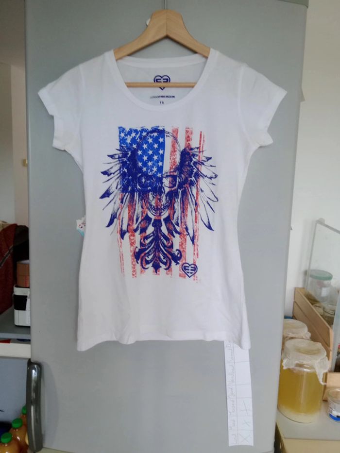 T-shirt femme 16 ans blanc à motifs usa c47 - photo numéro 1