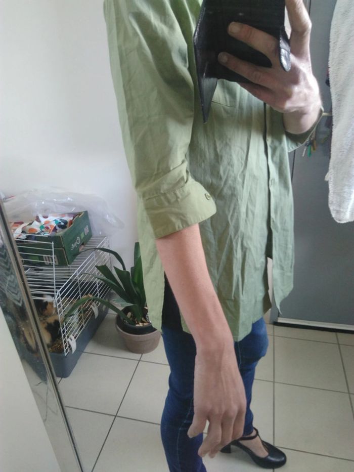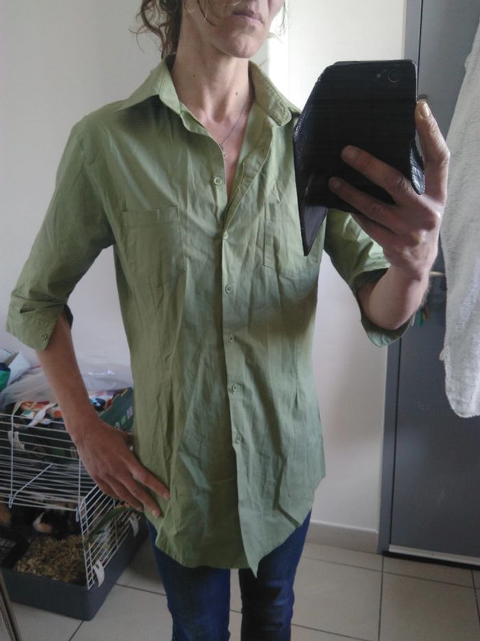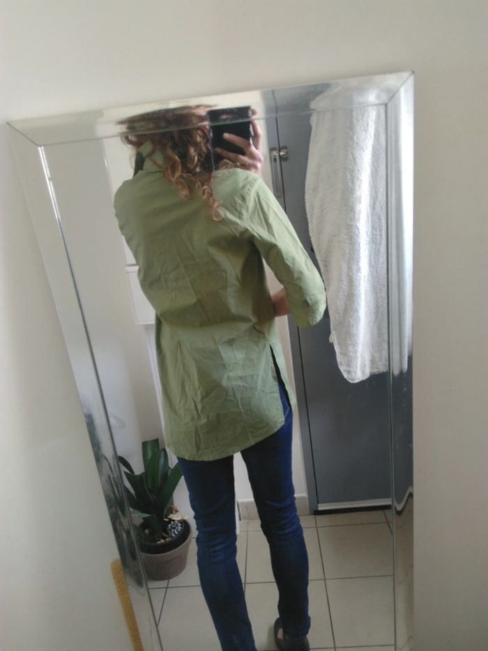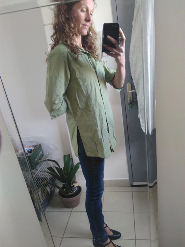 Stretch Fendue sur le côté, 2 petites poches à la poitrine Dernière photo : une légère décoloration, ne se voit pas en la portant car passe dessous #carineleray_femme_38
