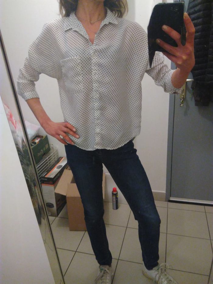 Chemise femme 38 blanche à pois noirs 34 - photo numéro 1
