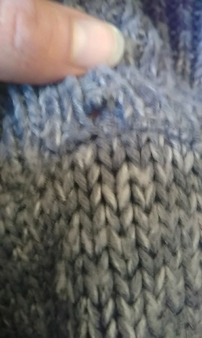 Manque 1maille derrière le col photo 3 La ceinture décousue pour moitié sur un côté 100%acrylique 71cm de l épaule au bas #carineleray_12A