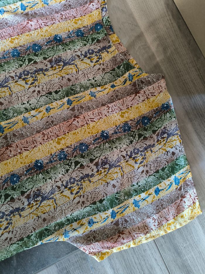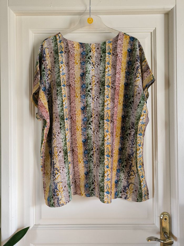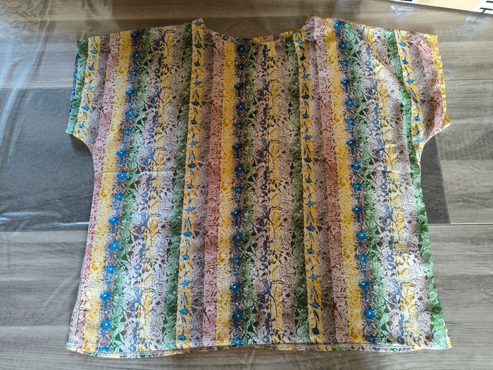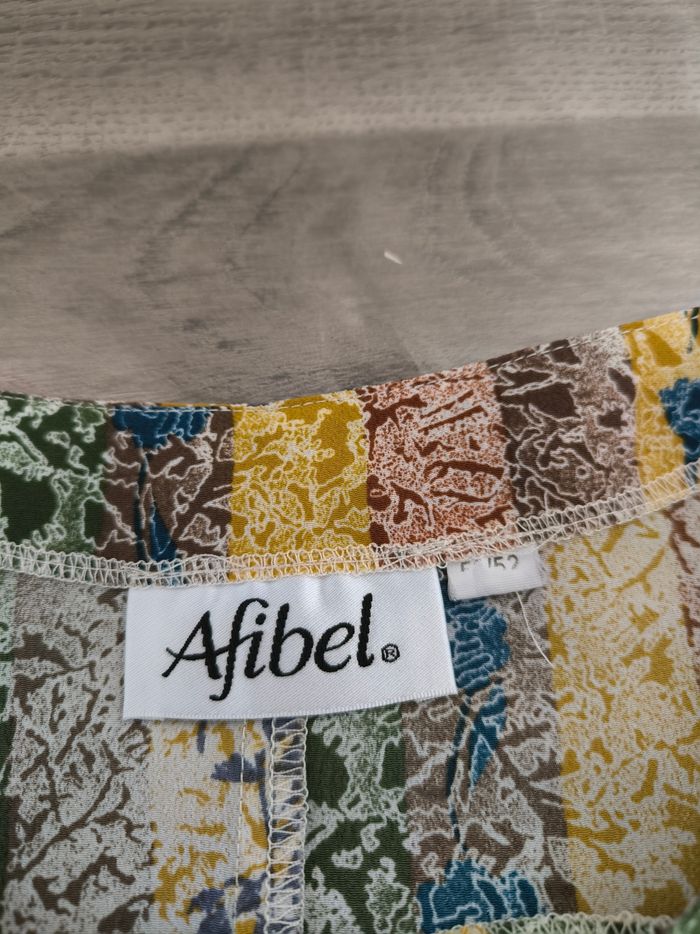 Blouse à manches courtes Marque Afibel Taille 50-52 • Coloris multicolore : jaune, bleu, vert, marron, rouge... • Imprimés • Col rond • Tissu fin, fluide Largeur aisselle à aisselle non étirée : 69 cm Largeur aisselle à aisselle étirée au maximum : 74 cm Longueur totale : 70 cm Longueur aisselle : 40 cm En très bon état #evelyne_taille_50 #evelyne_taille_52