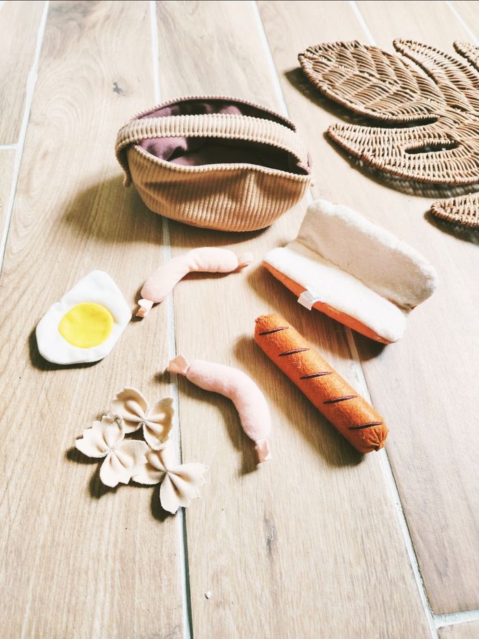 🎀Avec aliments en peluche/tissu : œuf sur le plat ,pain sandwich , saucisse grillée, pâtes . ..