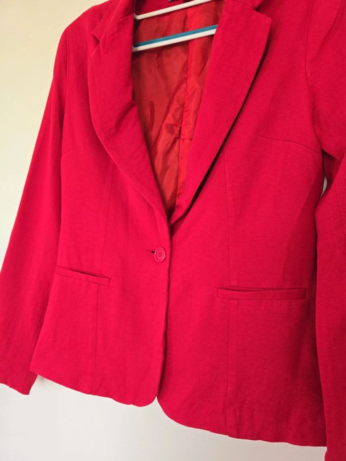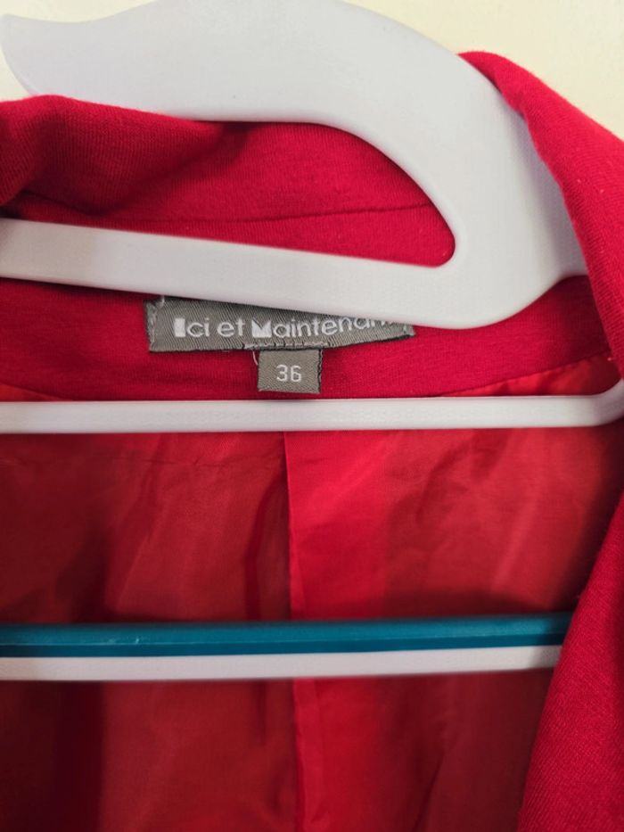 Veste blazer rouge Prévoir couture au niveau de la doublure dans le dos et aiselle gauche ( voir photo) Taille 36 Marque ici et maintenant #36femmebaba18bb