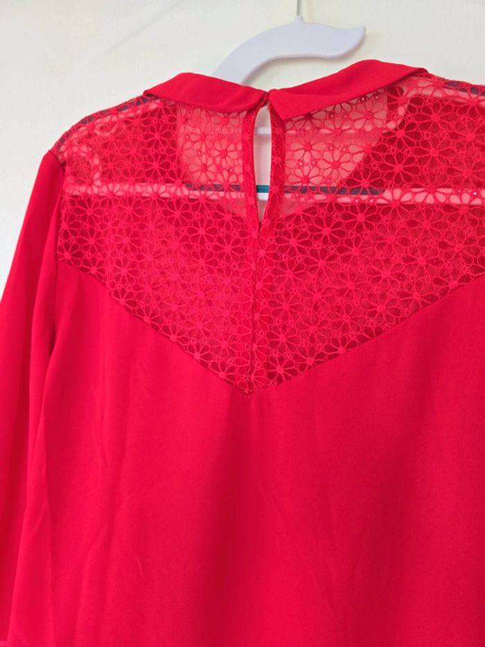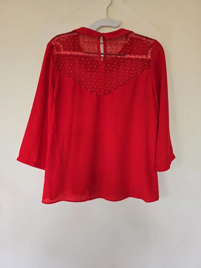 Blouse rouge manches 3/4 Dentelle sur le haut Bouton dans le dos Taille 38 Marque : noemie&co Tres bon état #38femmebaba18bb