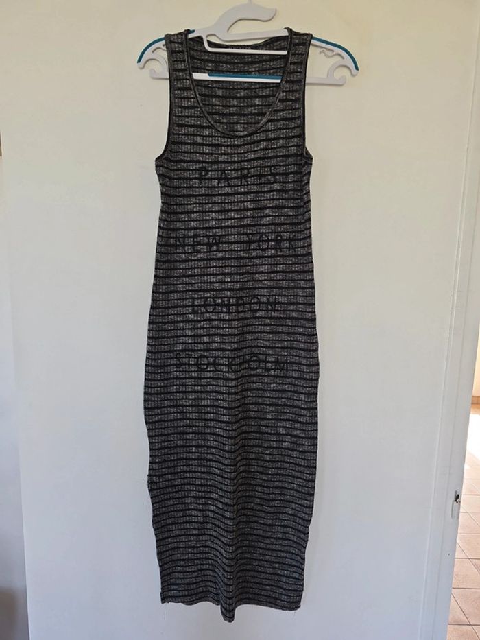 Robe longue noire et grise Petite fente sur un côté Écriture sur le devant Taille 38 Marque : mary&co Très bon état #38femmebaba18bb