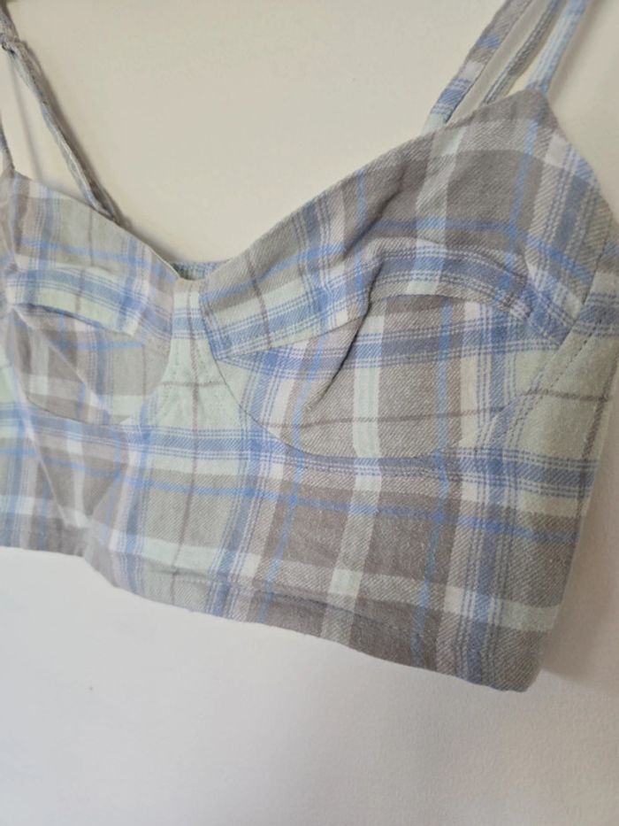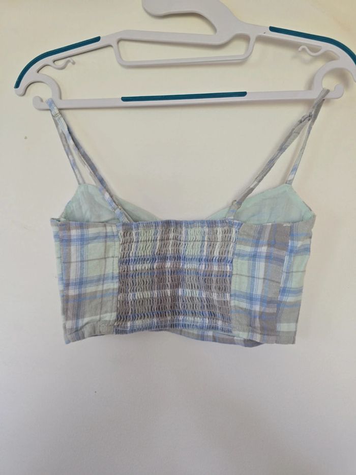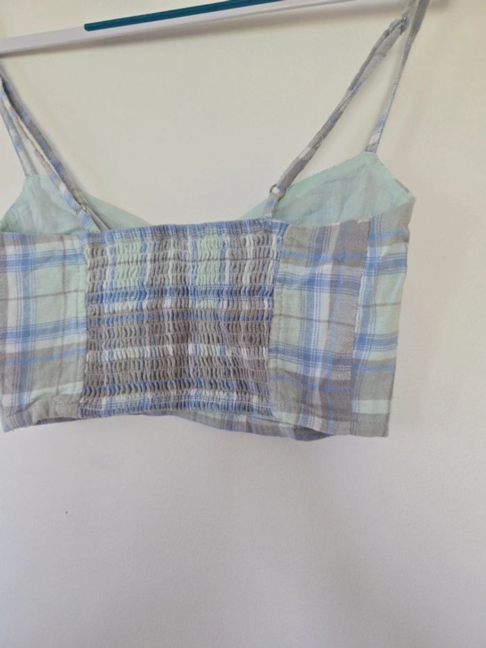 Croc top bleu clair à carreaux Élastique dans le dos Bretelles réglables Taille 34 Marque pimkie Très bon état #34femmebaba18bb