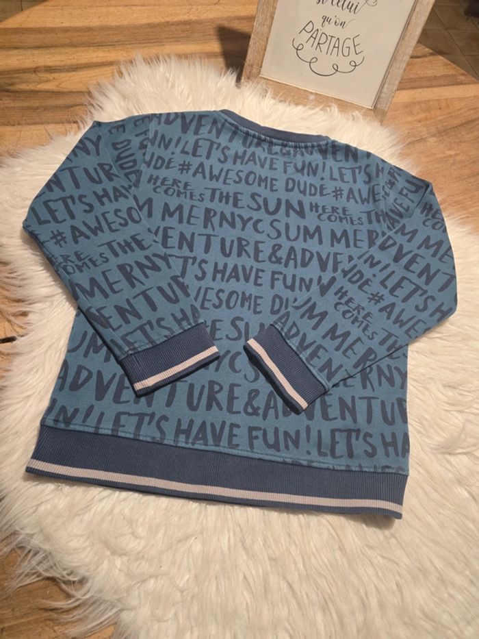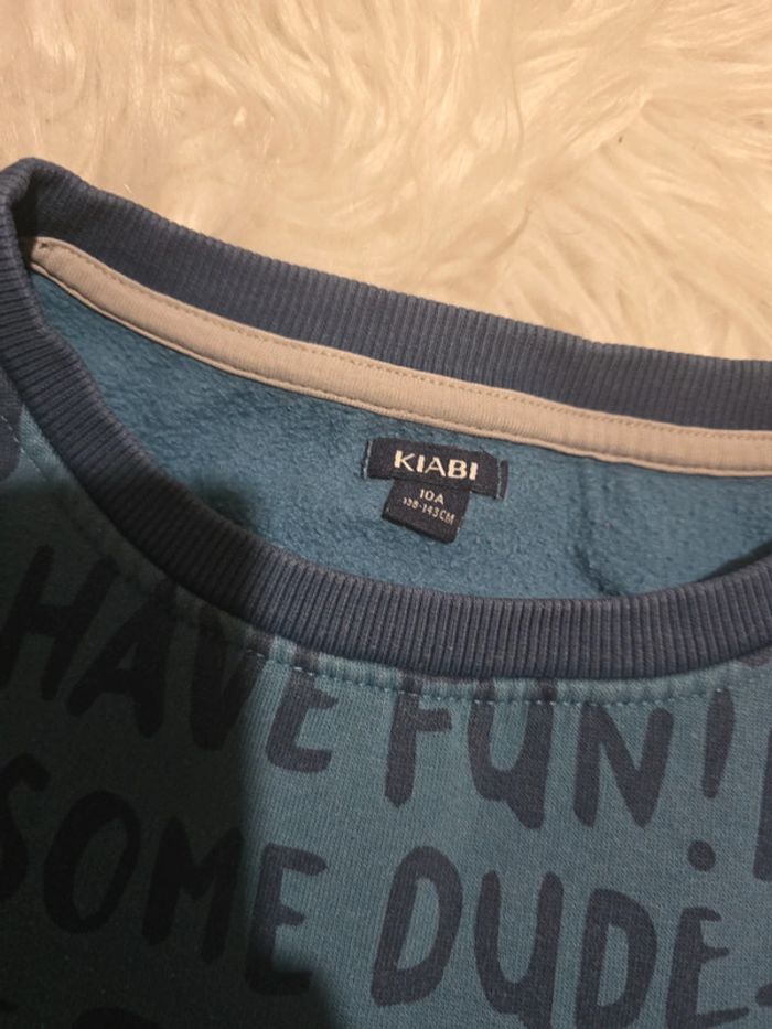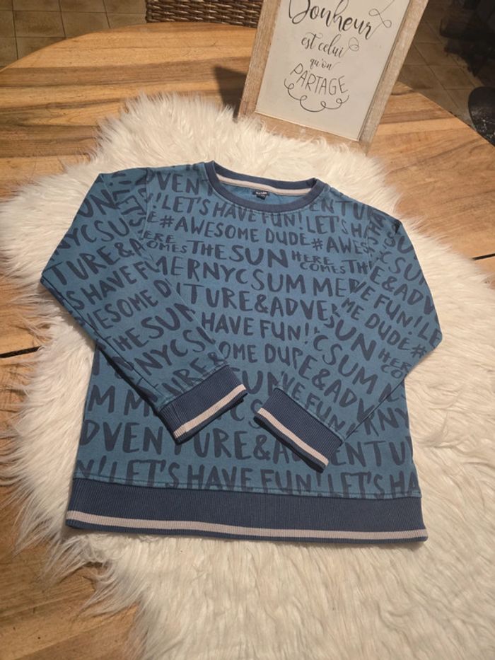Pull bleu avec écriture Taille 10 ans Marque kiabi Très bon état #10ansgarçonbaba18bb