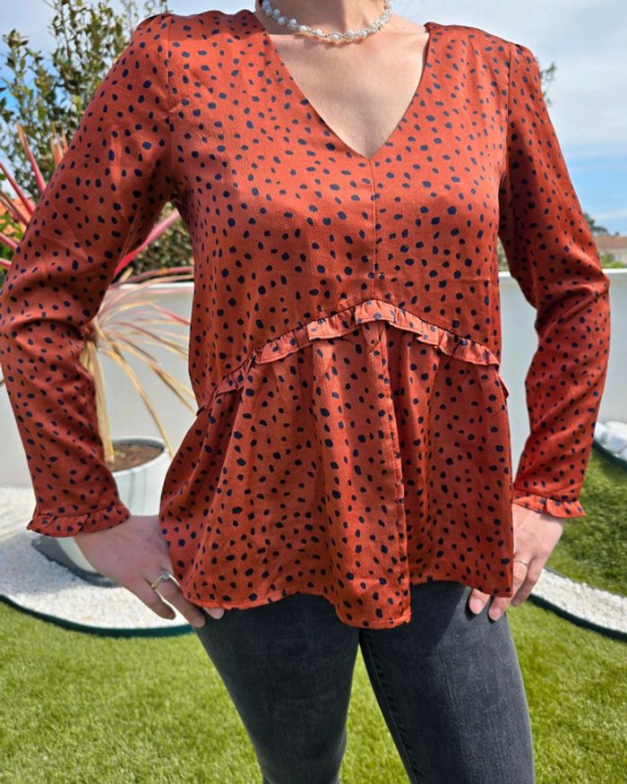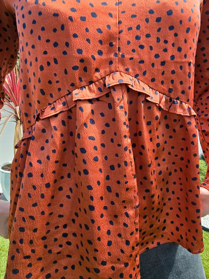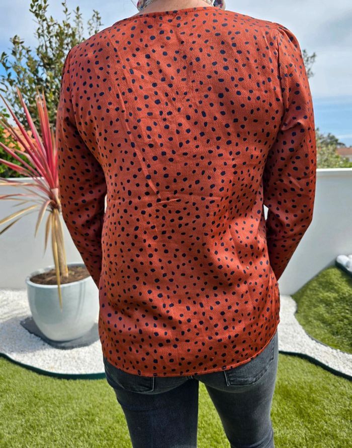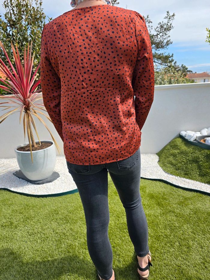 Blouse ample couleur rouille au pois noir Taille s Marque : je ne sais plus. Très bon état #36femmebaba18bb
