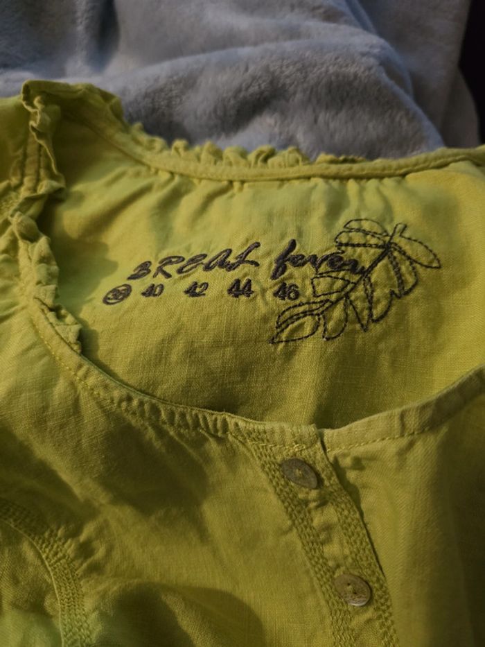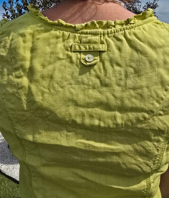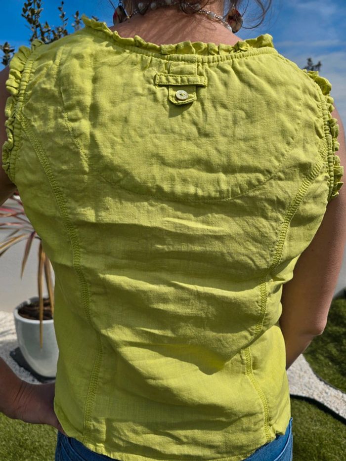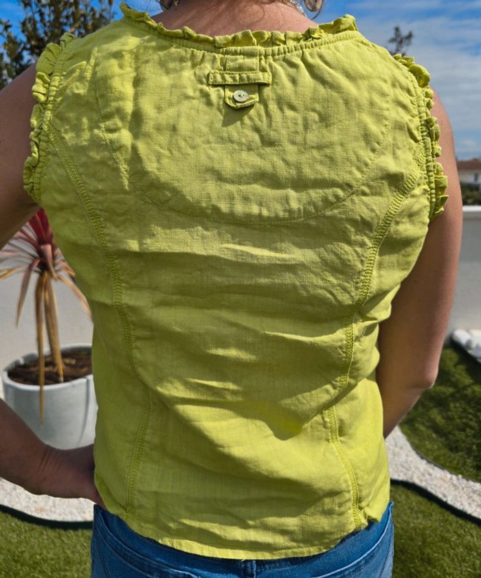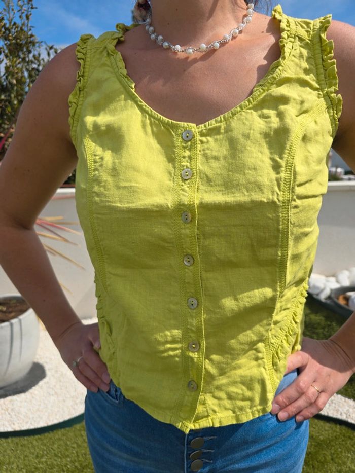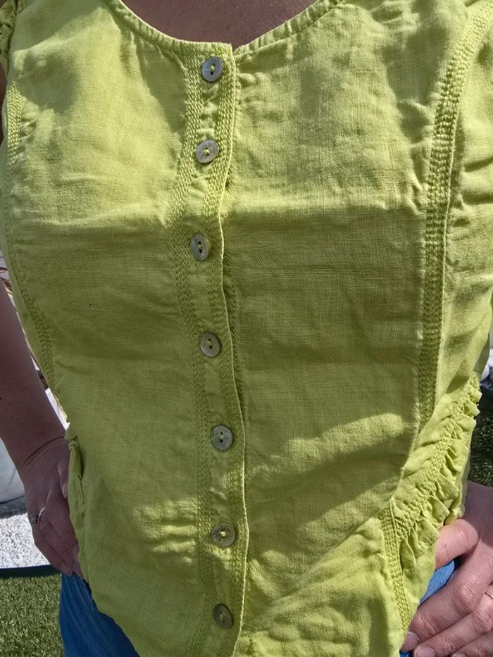 Débardeur vert pomme avec boutons devant Matière lin Col rond Taille 38 Marque : Patrice breal Très bon état #38femmebaba18bb