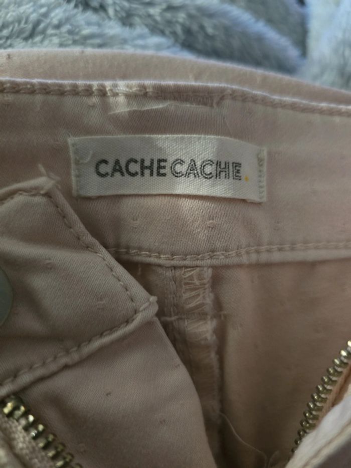 Pantalon rose pâle avec petits points Petites tâches devant, se voient peu ( voir photo) Taille 36 Marque cache-cache Bon état #36femmebaba18bb