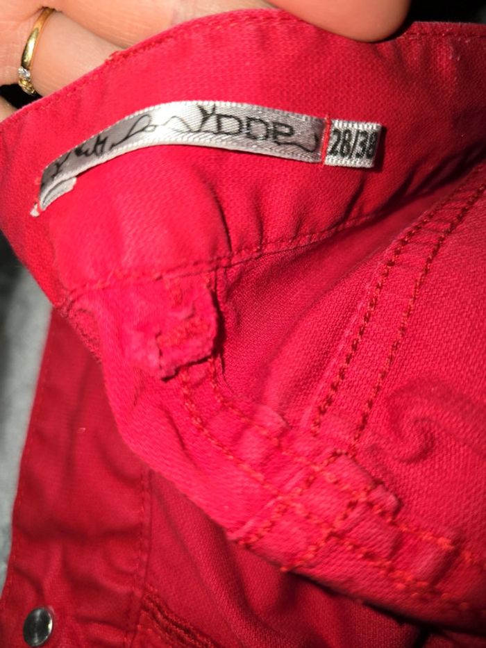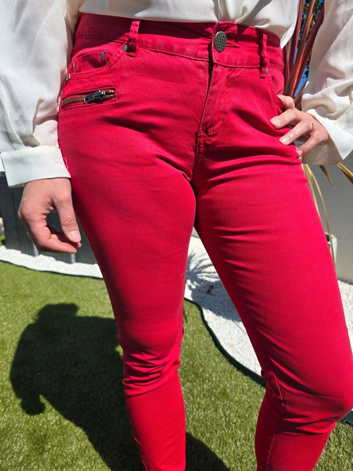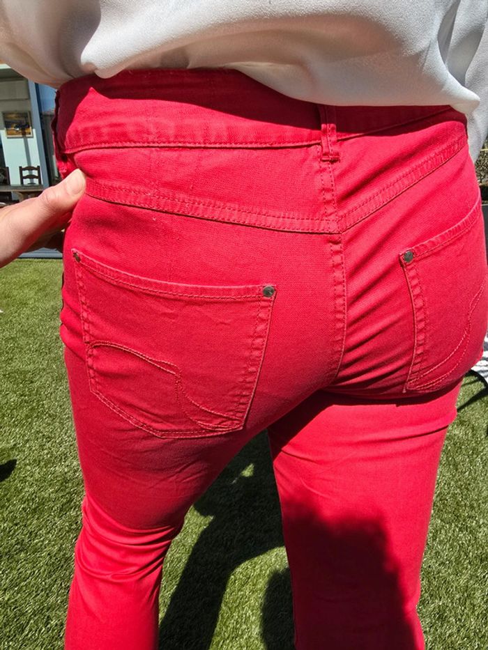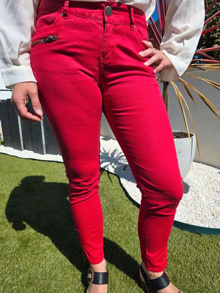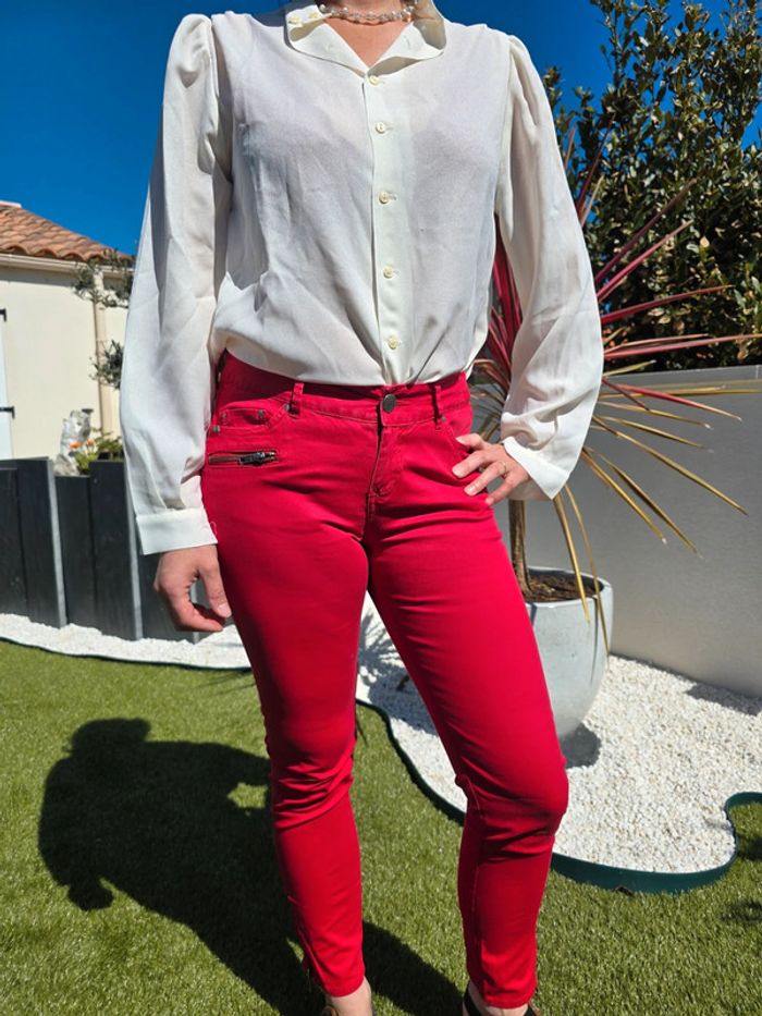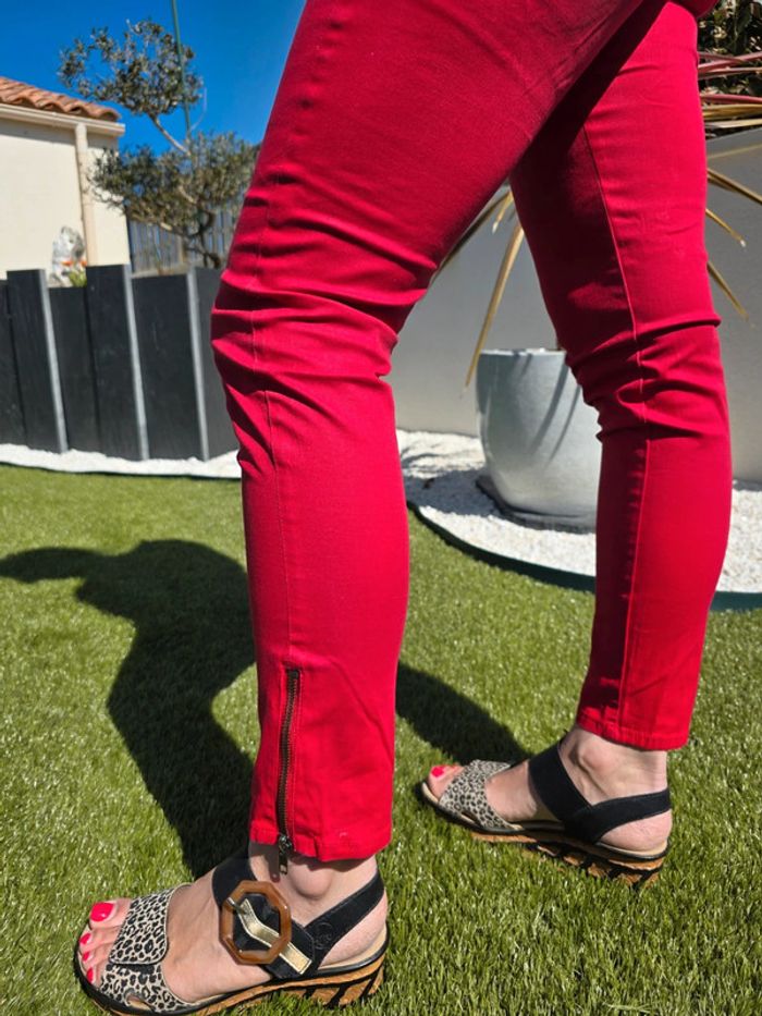 Pantalon rouge cropped Fermeture éclair aux bas des jambes Coton et elasthane Taille 38 Marque DDP très bon état #38femmebaba18bb