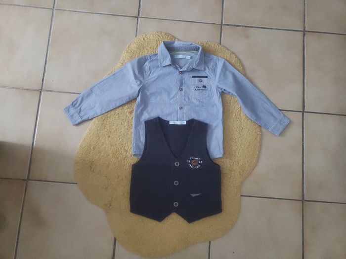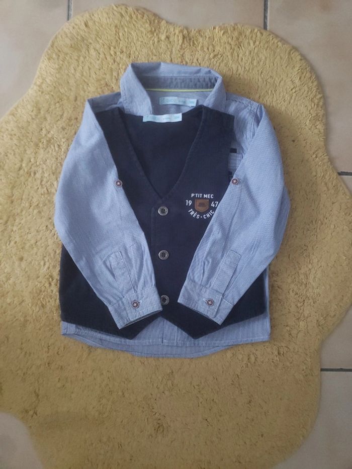Ensemble Gémo Chemise et gilet sans manche Taille 36 mois Chemise avec des taches de feutre voir photos