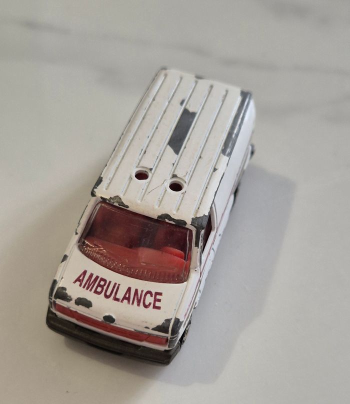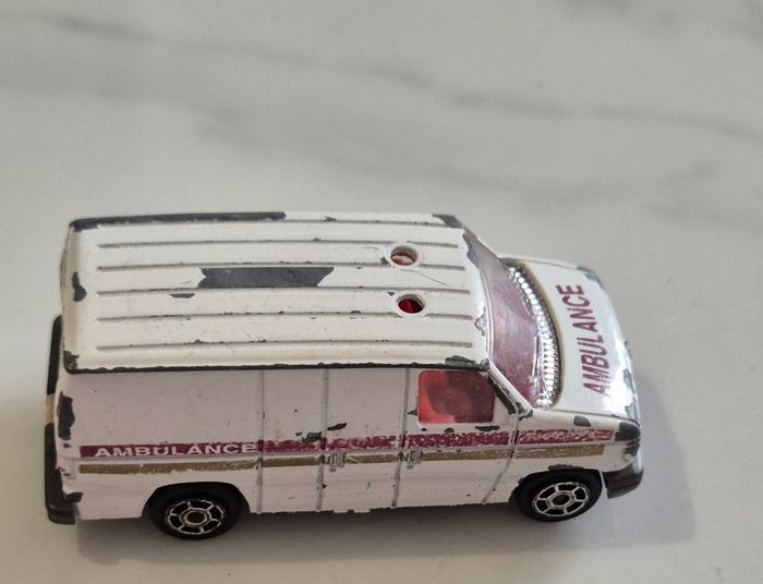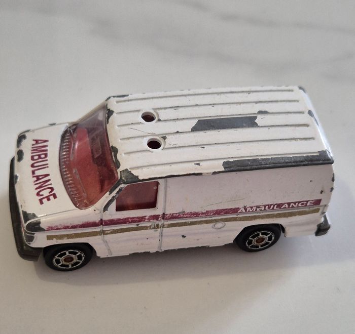Vehicule miniature en métal Majorette n°270/271 Ford econoline Ambulance blanche Echelle 1/63 Peinture écailles à certain endroits Merci de vérifier les photos #majorette #majorette270271 #fordeconoline #majoretteambulance #majorettefordeconoline