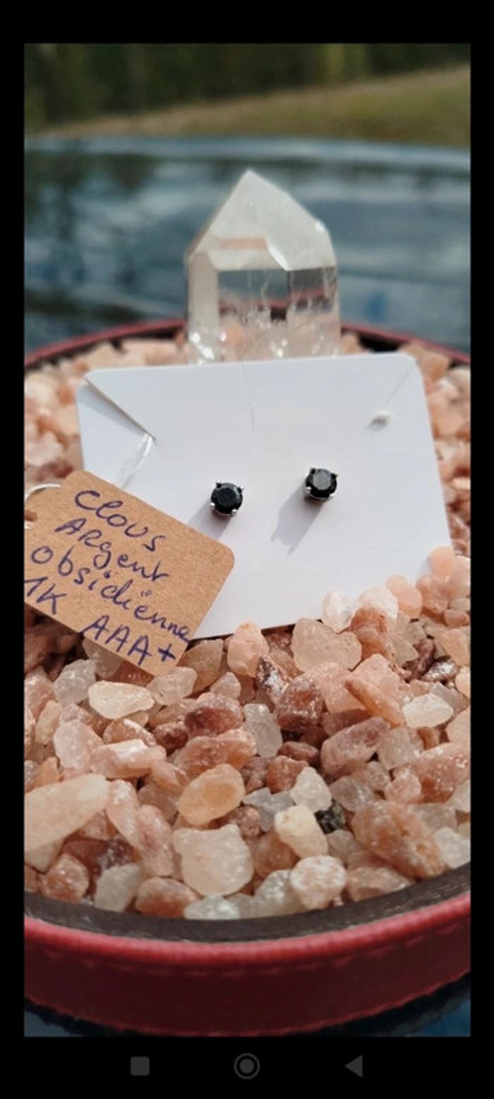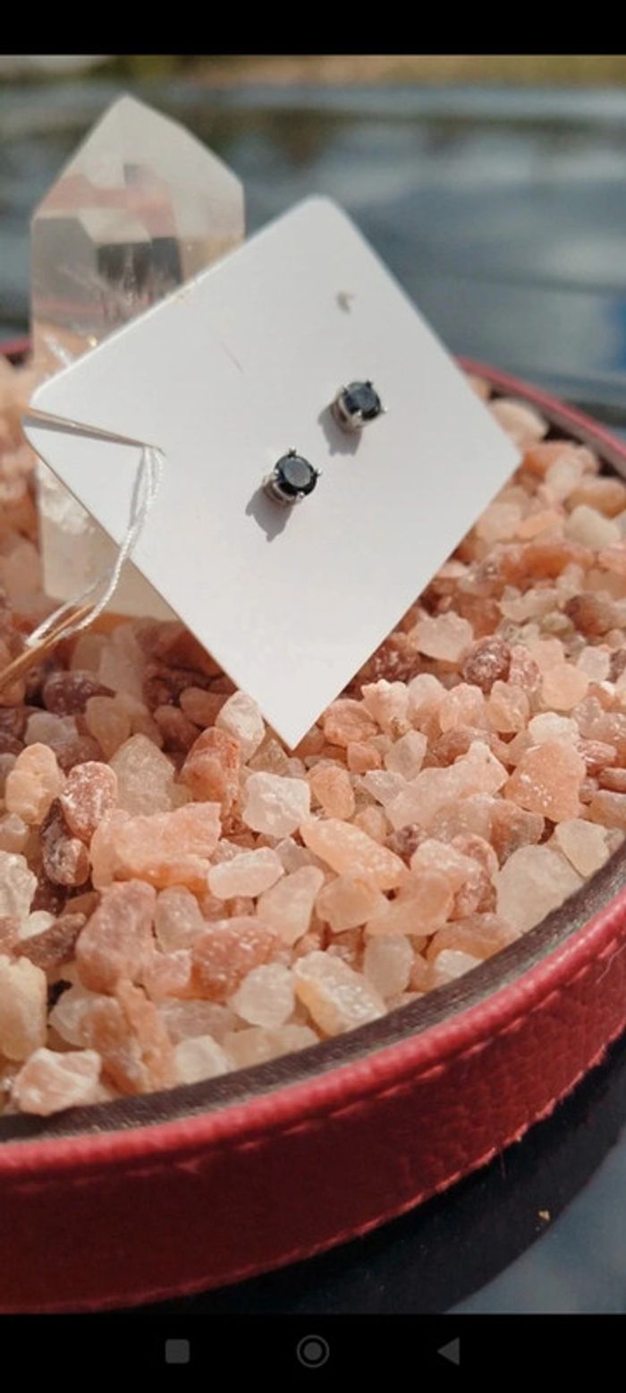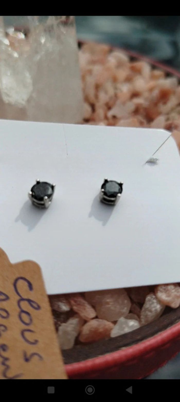 Clous en Argent 925 Sterling en Obsidienne 1 Carat - photo numéro 5