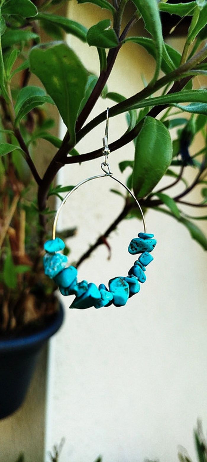 Créoles argent et Turquoise - Un éclat exceptionnel - photo numéro 1