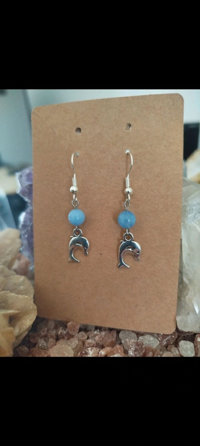 Boucles d'oreilles ''Little Dolphin' en Aigue-Marine - photo numéro 3