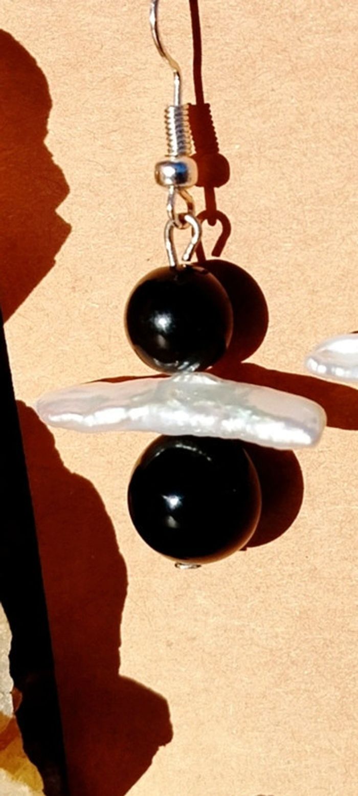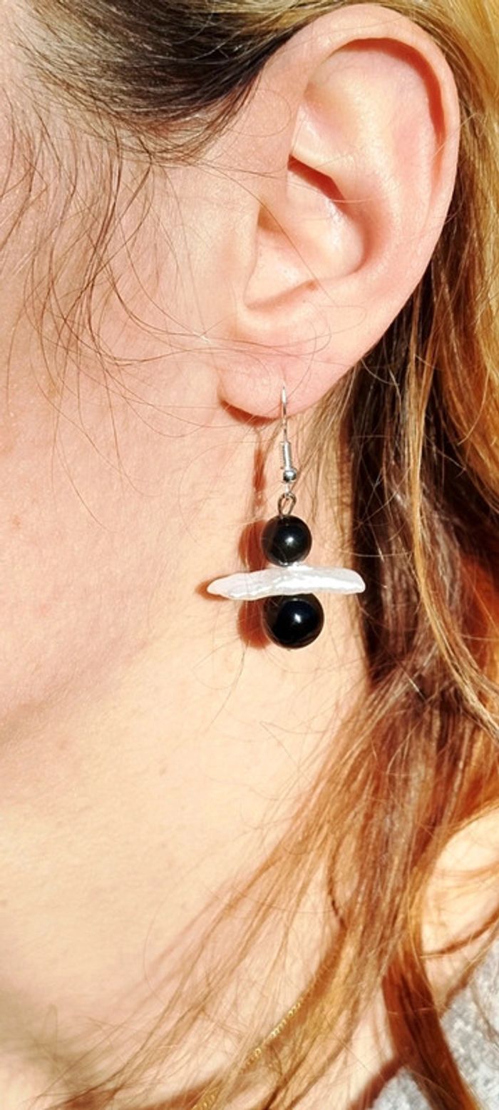 Boucles d'oreilles Obsidienne Nacre - photo numéro 1