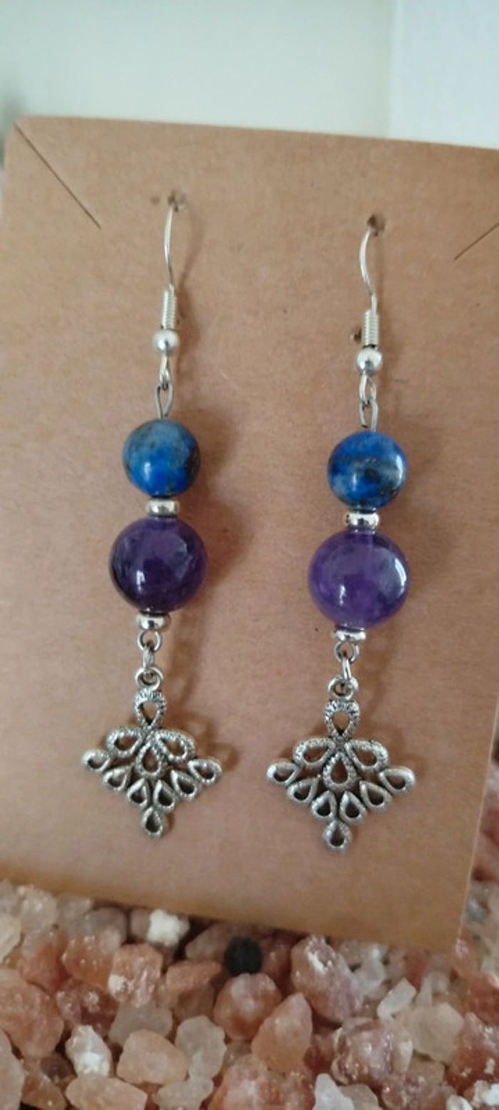 Boucles d'oreilles''Drop of Life'' Lapis-lazuli/Améthyste - photo numéro 2