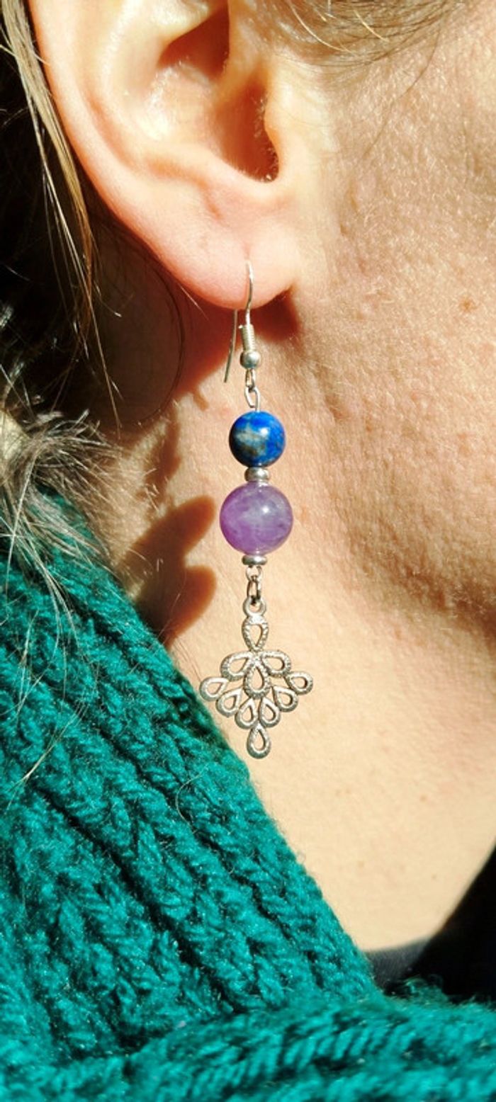 Boucles d'oreilles''Drop of Life'' Lapis-lazuli/Améthyste - photo numéro 4