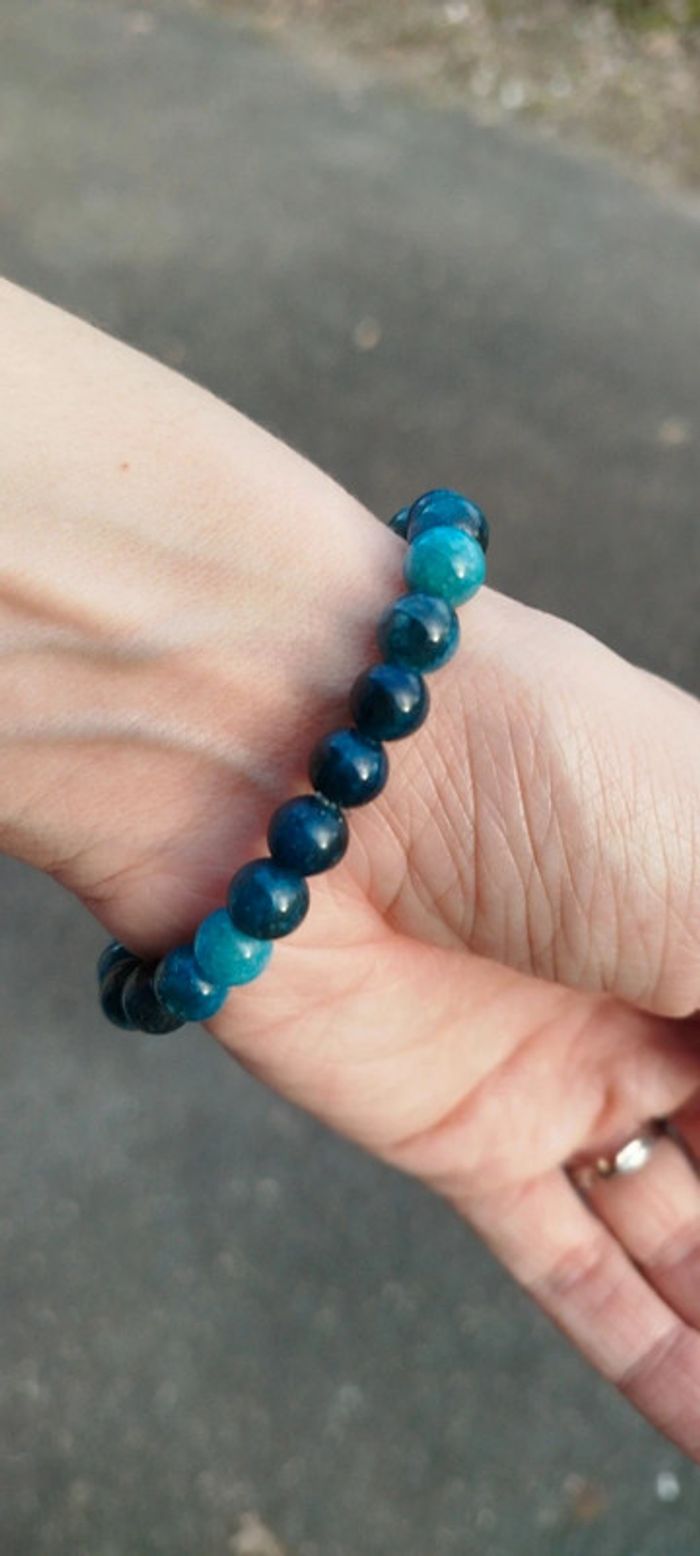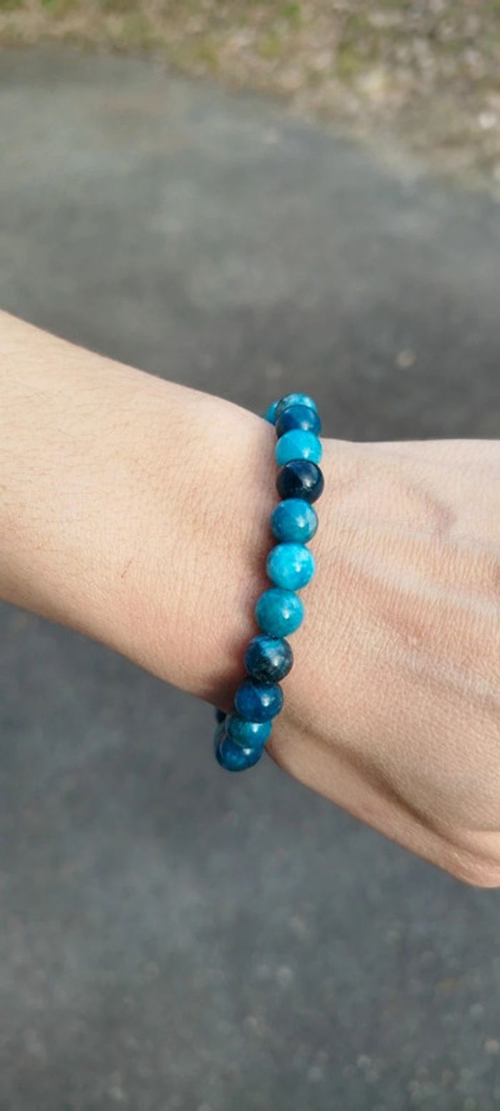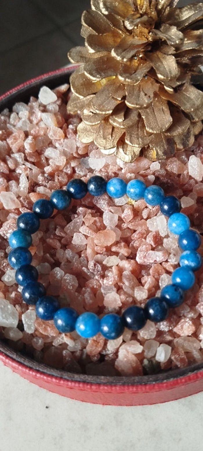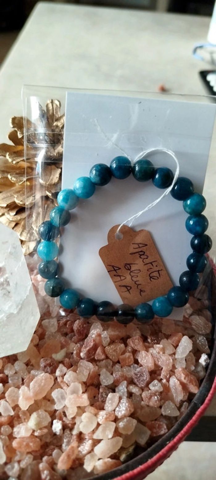 Très joli bracelet Lithotherapie en Apatite bleue de qualité AAA. Bracelet adapté pour tous les poignets. ✅ L'apatite bleue est réputée pour ses nombreuses propriétés énergétiques et spirituelles, notamment : Stimulation de la Communication : L'apatite bleue est connue pour favoriser l'expression claire et authentique des pensées et des émotions. Elle aide à surmonter la timidité et à articuler les sentiments avec assurance. 🎀 Tarif raisonné 🎀 🎀Plaisir a petit Prix 🎀 ✨------------🎀----------✨ - Articles U limités 🎁🌟🎀. ✨--------------🎀-----------✨ ❇️❇️❇️ Bonne Visite ❇️❇️❇️