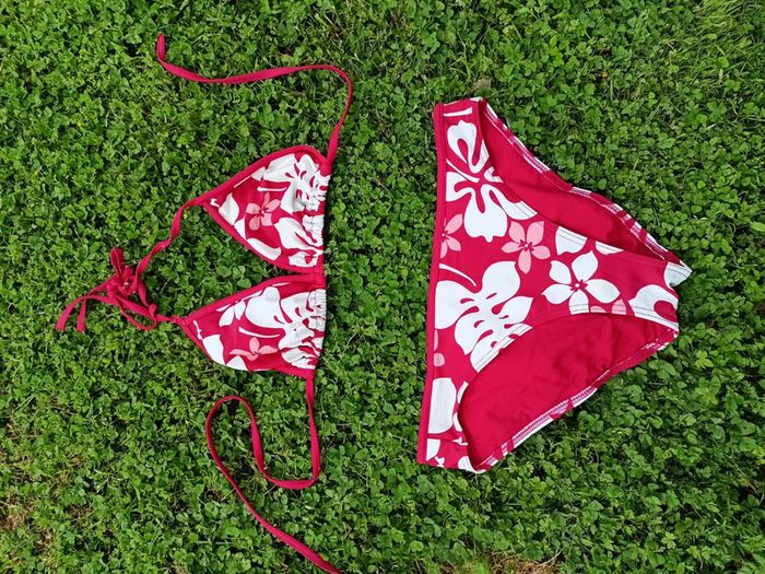 Rouge avec fleurs blanches et roses Marque decathlon Taille 38 Bon état