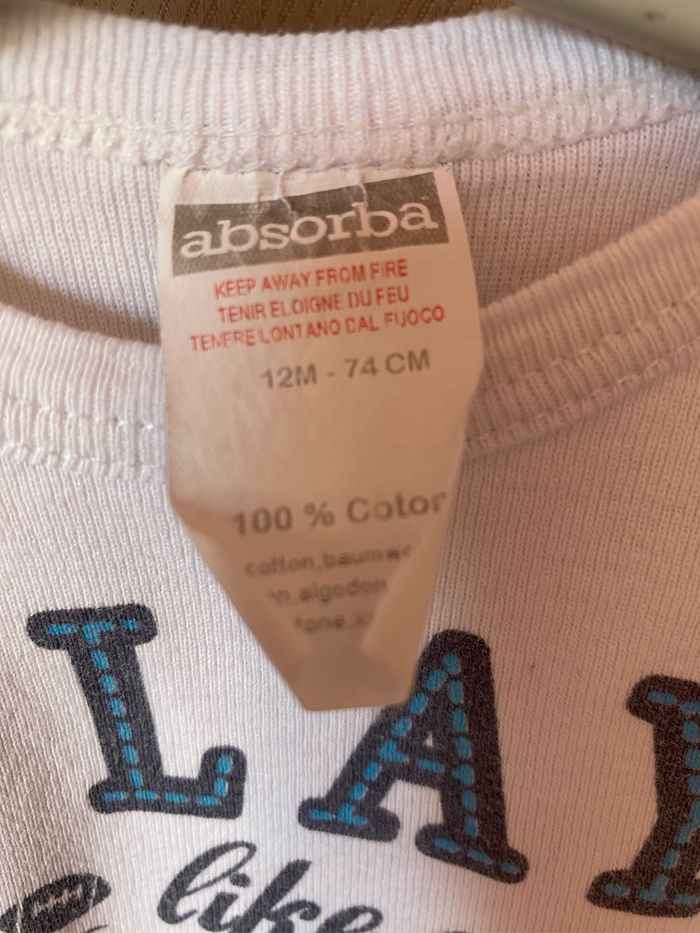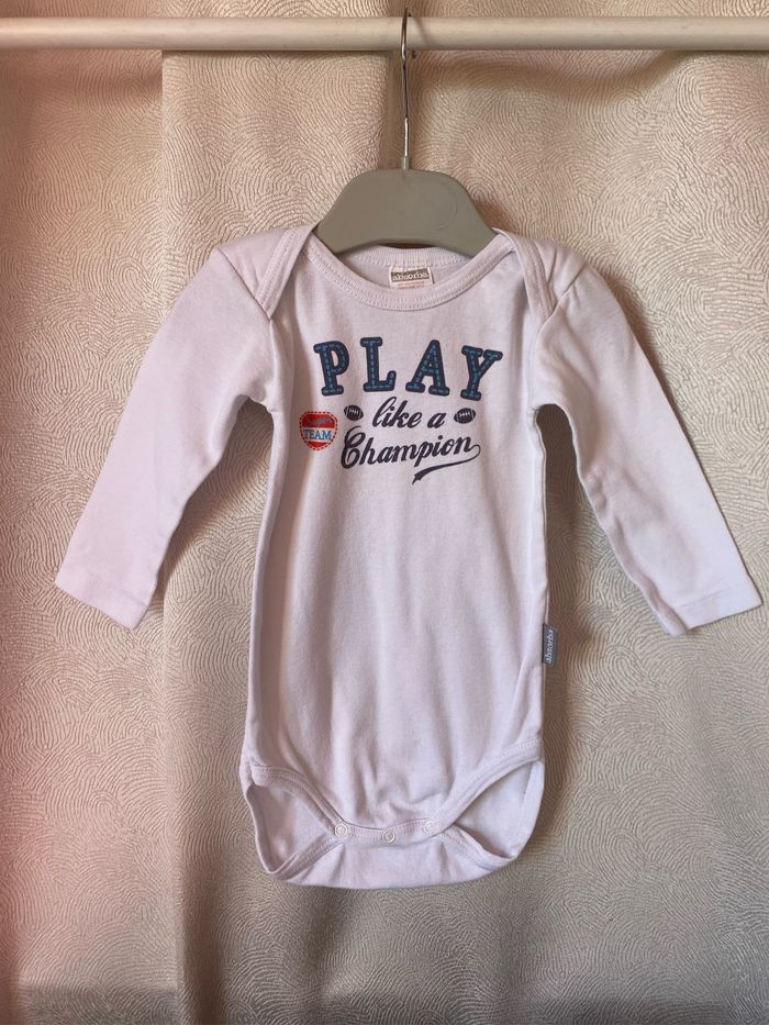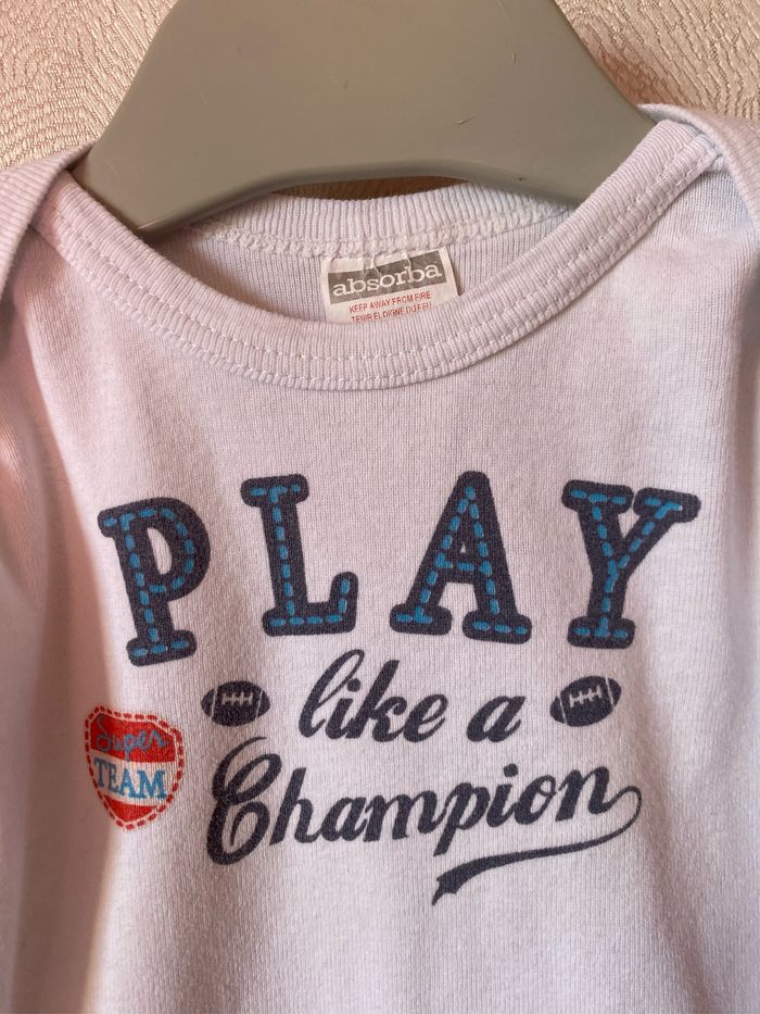 Body blanc manches longues imprimé devant play like a champion Taille 12 mois 74 cm Absorba