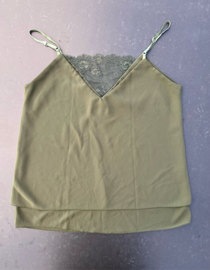 Débardeur kaki à voile double et dentelle - photo numéro 1