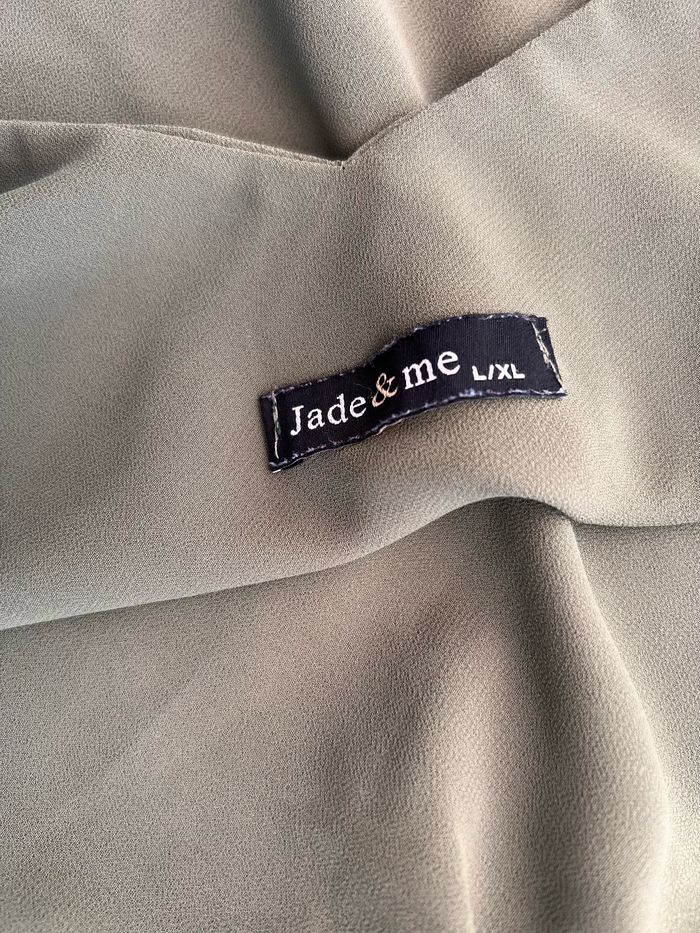 Débardeur de couleur kaki, bretelles spaghetti, col en V avec de la dentelle sur le devant. Voile doublé. Bretelles réglables. En excellent état, très peu porté. Taille L/XL, marque Jade & Me. Envoi rapide et soigné, réduction automatique dès 2 articles sélectionnés. Mes autres ventes ici: #femmeugolola #femme4042 #débardeur4042 #jadetme