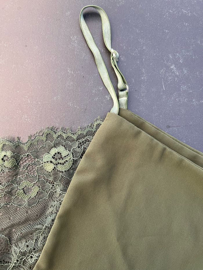 Débardeur kaki à voile double et dentelle - photo numéro 2