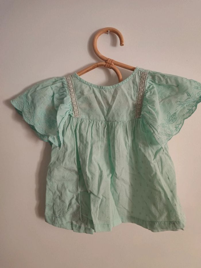 Tee shirt dentelle Z collection Grain de blé. Taille 24 mois, couleur menthe. Très bon état. Beaucoup d'autres vêtements à vendre du 9 mois au 4 ans.