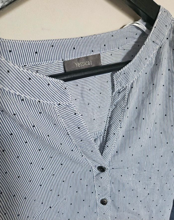 📌 Lot 20% de remise pour l'achat de 5 articles, suite ... Blouse bleu clair, fine rayure blanche et pois bleu marina, manche longue, bouton sur le haut, ➡️Largeur à plat sous les bras  65 cm ➡️Longueur 74 cm ➡️ 100 % coton ⭐ Excellent état ✈Envoi rapide des colis 💗 Abonnez vous à mon profil, nombreux articles ajoutés régulièrement ! 🌸 Tapez Laetitresors pour voir mes annonces #laetitresors_blouse52 #blouse #yessica #rayure #rayé #manche #longue #bouton #clair #bleu #marine #top #chemisier #chemise #laetitresors